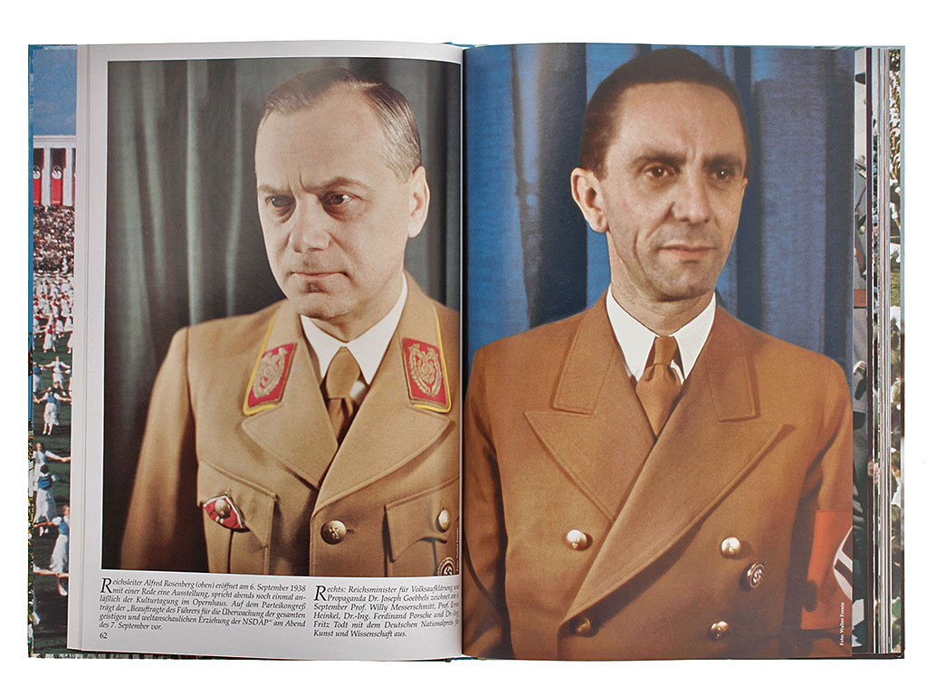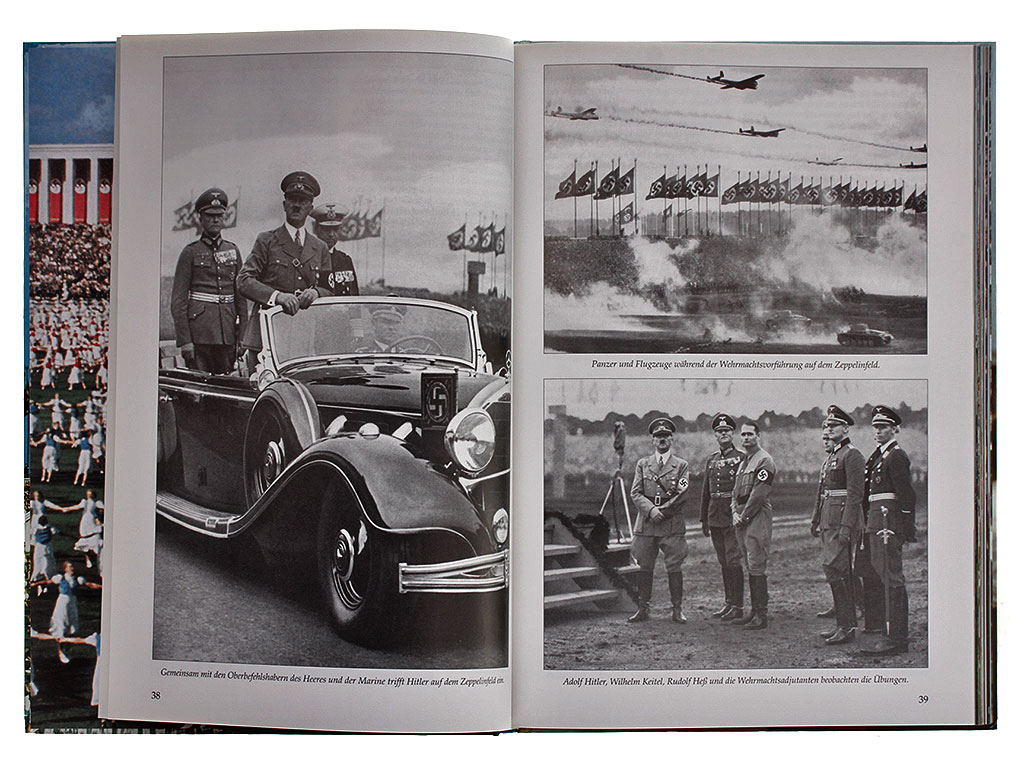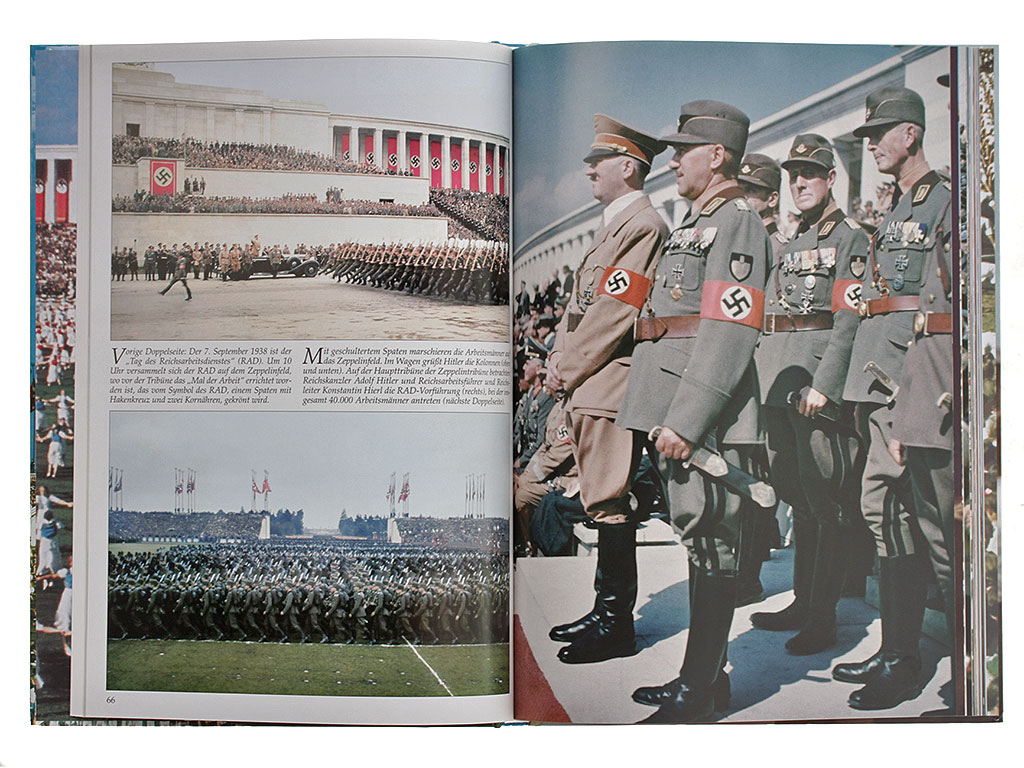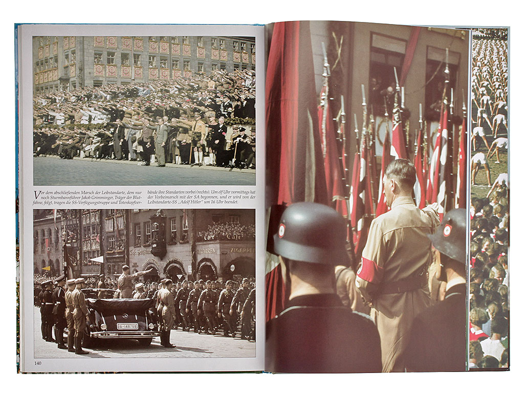 Книга "Великая Германия. День Партии 1938 года. История в цвете" (Grossdeutschland. Reichsparteitag 1938. Zeitgeschichte in Farbe) посвящена последнему из ежегодно проводившихся массовых мероприятий государственного масштаба в Третьем Рейхе - Дню Партии (NSDAP) 1938 года. Представляет собой фотоальбом из раскрашенных в цвет черно-белых и цветных снимков того времени. На немецком языке.