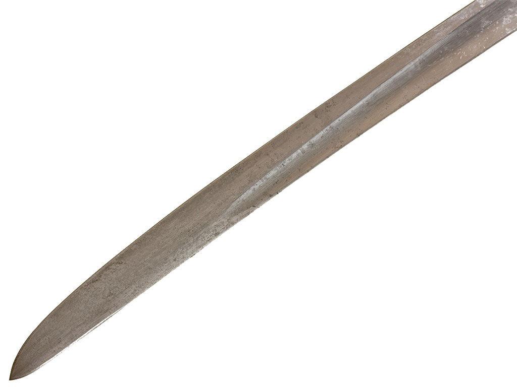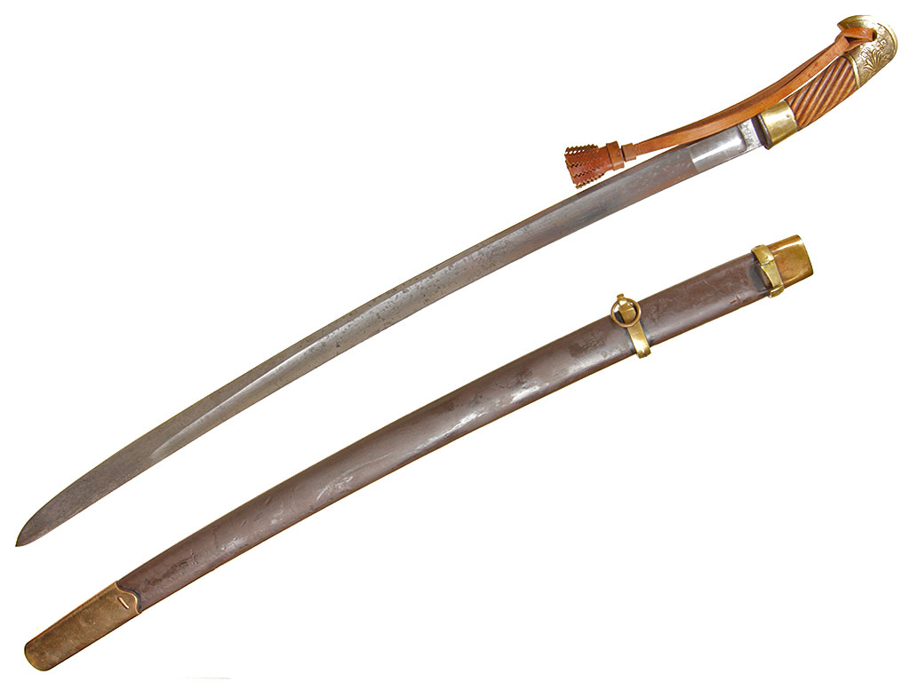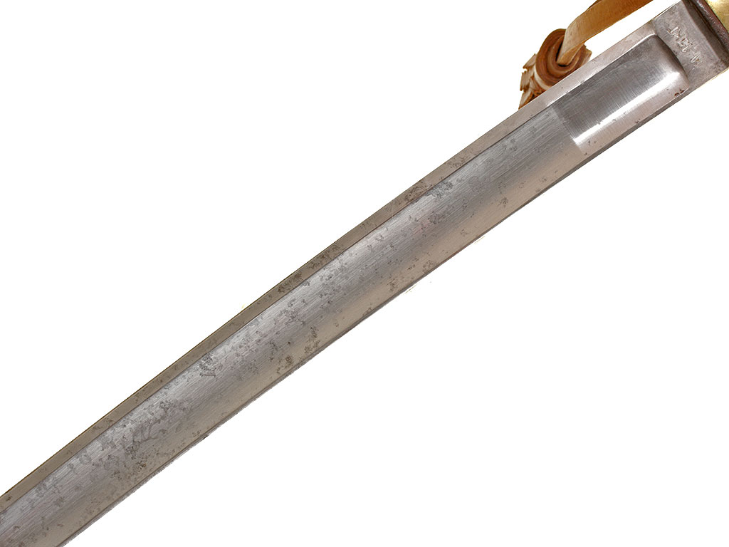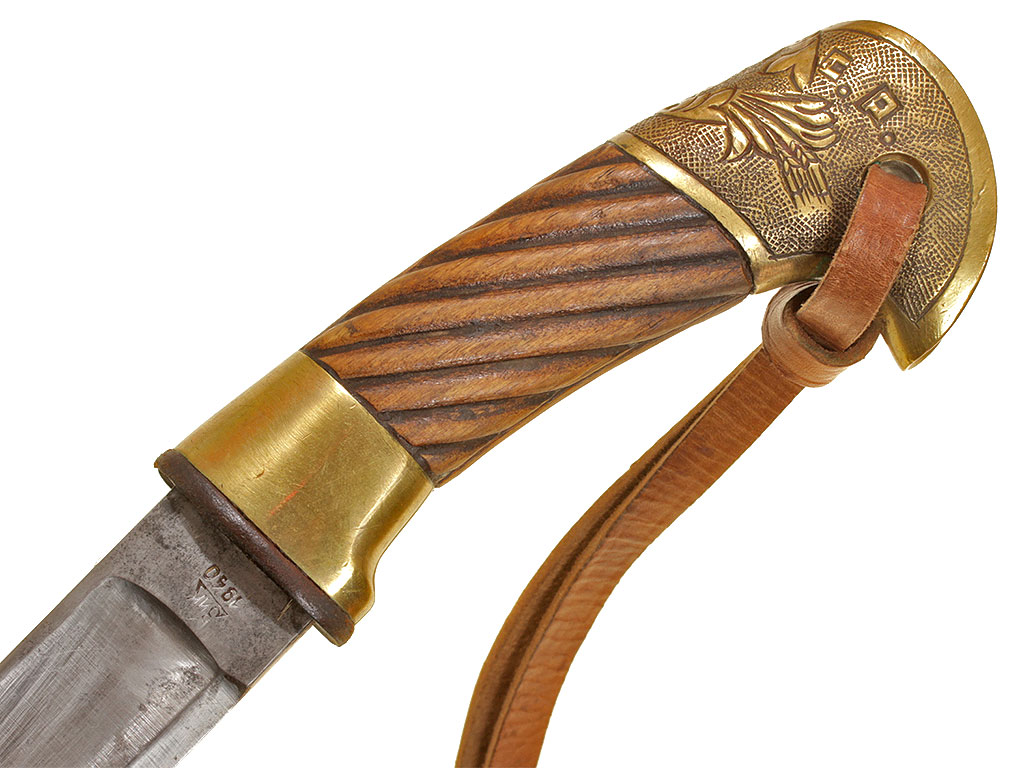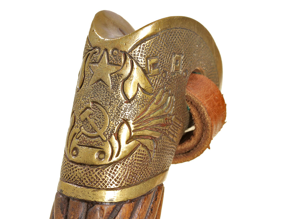 Шашка кавалерийская образца 1927 года, изготовленная в 1940 году. Клинок незначительной кривизны, с одним широким долом, у основания клеймо Златоустовского инструментального комбината с годом выпуска. Рукоять деревянная, с латунными навершием и втулкой. Навершие украшено изображением серпа и молота, пятиконечной звезды и надписью "С.С.С.Р.". Ножны деревянные, грунтованные, выкрашенные в черный цвет, с латунным прибором. Оригинальный темляк.