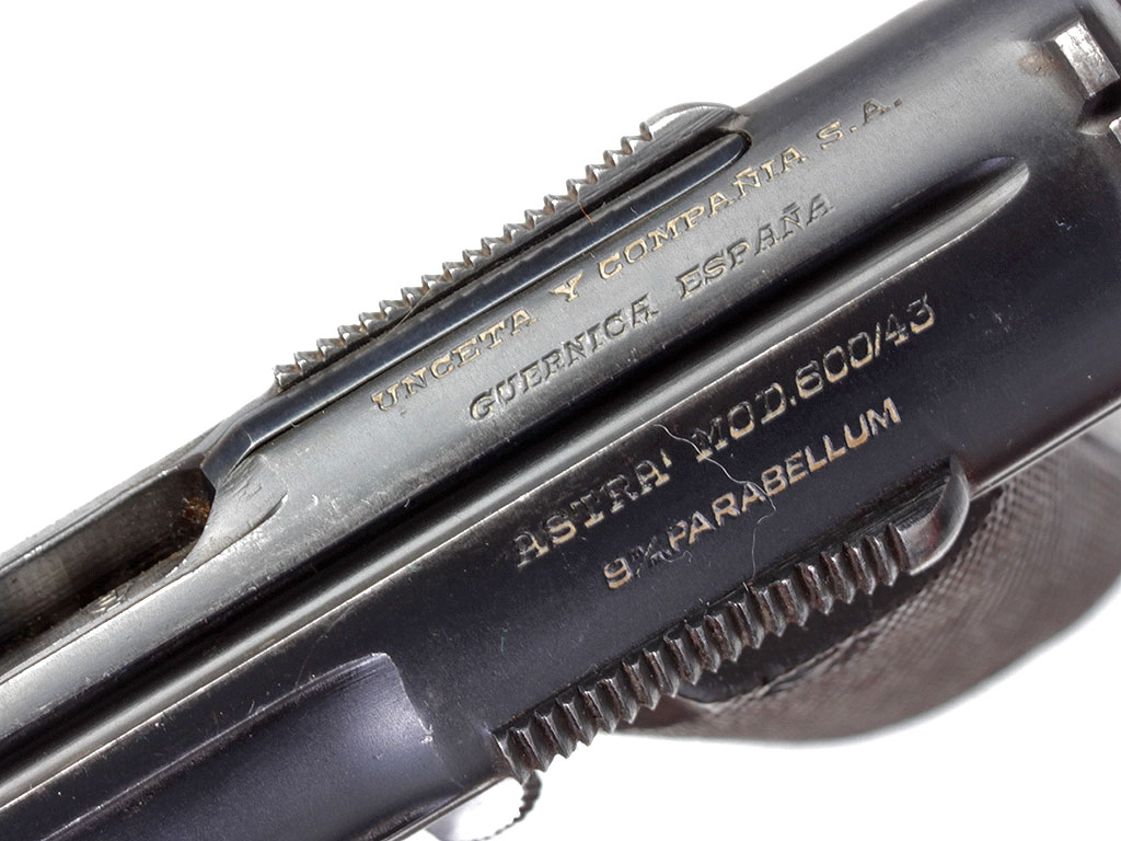 Пистолет Астра, модель "600/43" - военного выпуска, изготовленный для нужд Вермахта (калибр 9 mm Parabellum). На раме имеются клейма испанской военной приемки. Отличное состояние, все части (включая магазин) на одном номере, пистолет в оригинальном воронении.