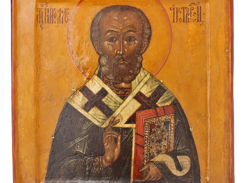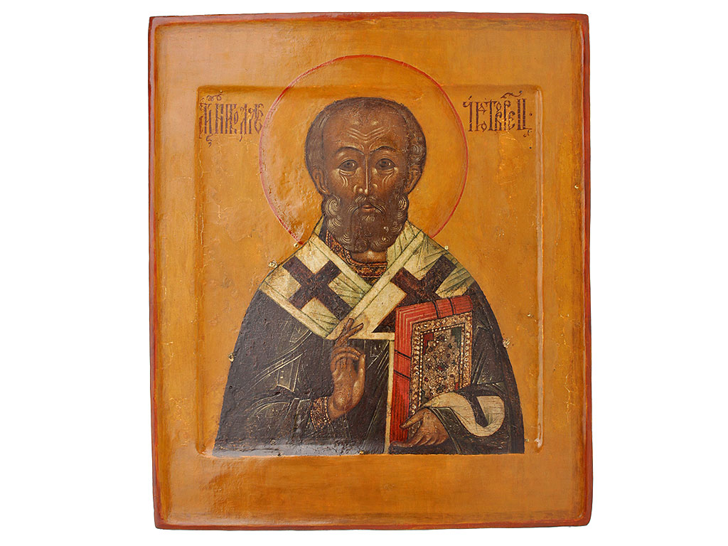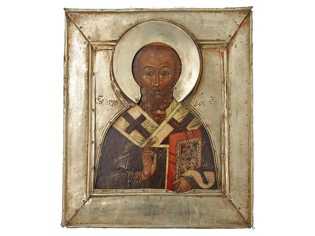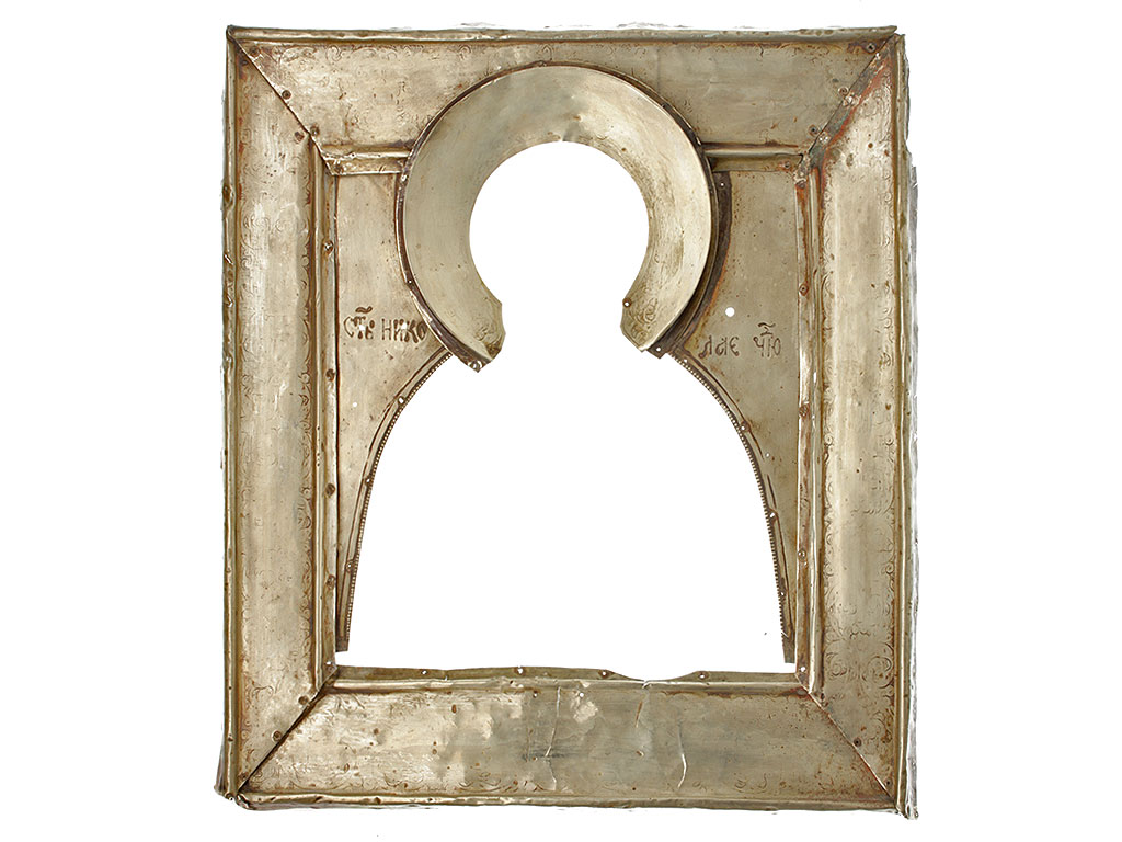 |Икона "Св. Николай Чудотворец" с серебряным басменным окладом, середина XVII века. Россия