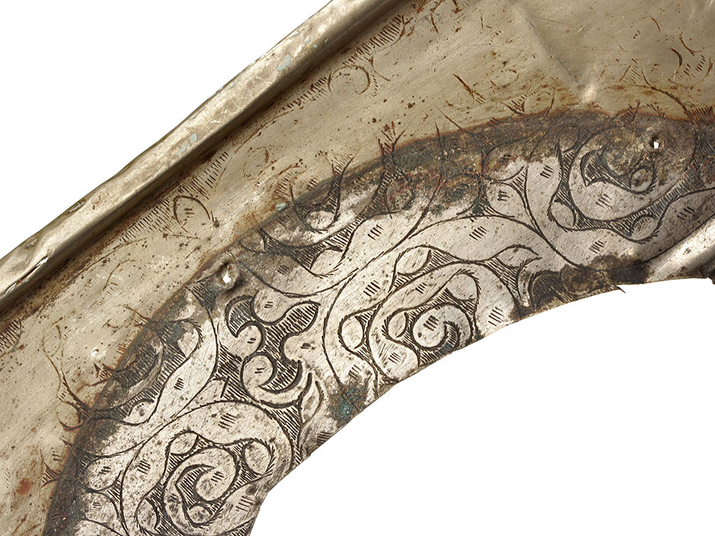 После реставрации басменный оклад не стали заново крепить к иконе, он прилагается впридачу. При желании покупатель сможет закрепить его либо на икону, либо на отдельную доску для экспонирования.