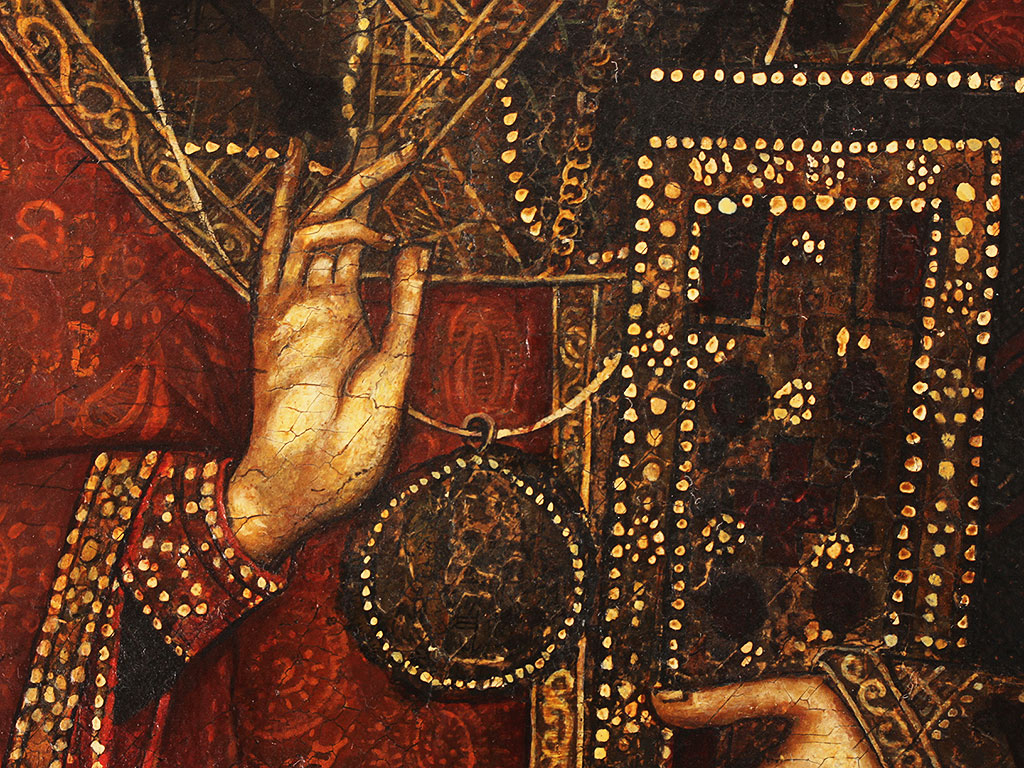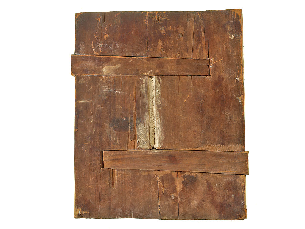 Доска имеет двойной ковчег. Две врезные встречные шпонки. Темпера.