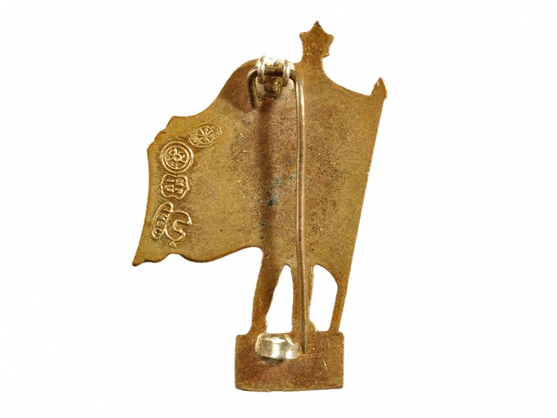 Значок "Павильон СССР на Всемирной выставке в Нью-Йорке в 1939 году". Томпак, золочение, эмаль.
