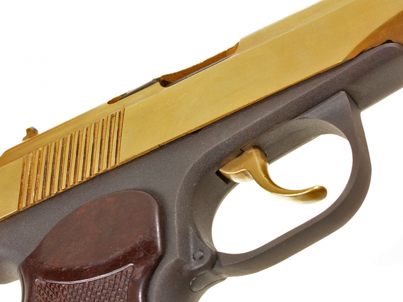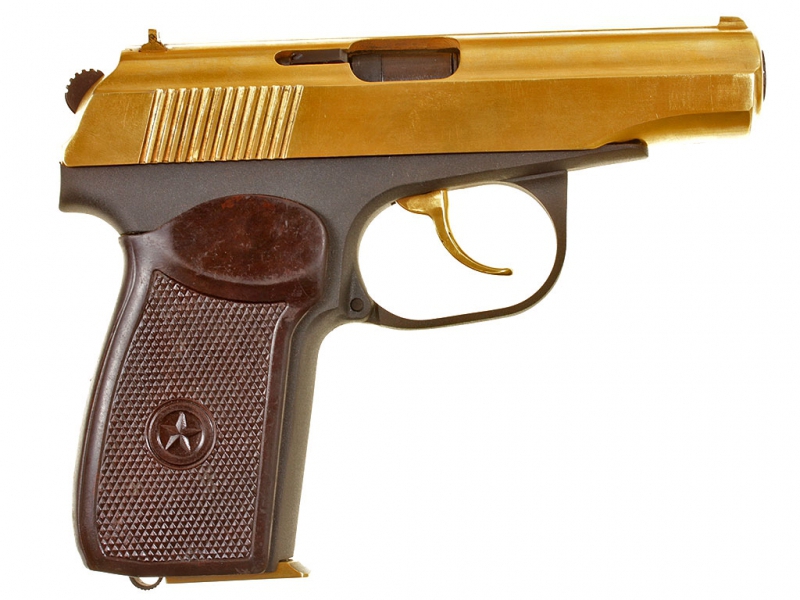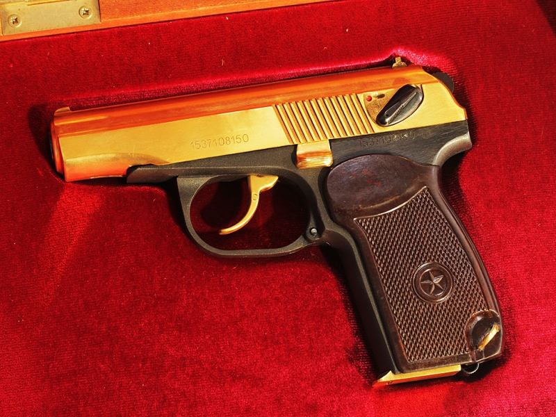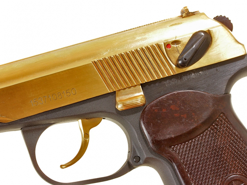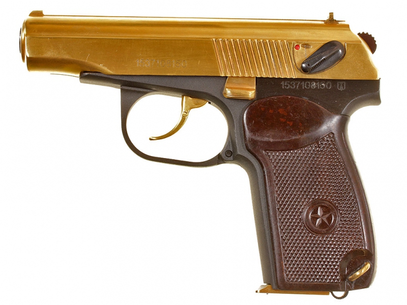 Пистолет Макарова в позолоченном подарочном исполнении. Покрыт 24-каратным золотом, помещен в подарочный деревянный футляр.
