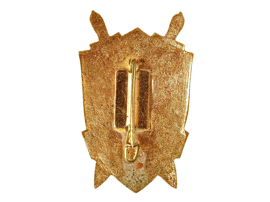 Знак "50 лет Советской прокуратуре". Томпак, золочение, эмаль. Московский монетный двор.