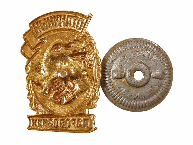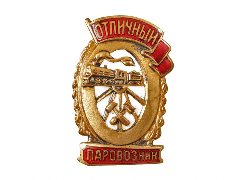 Знак "Отличный паровозник". Томпак, серебрение, эмаль.