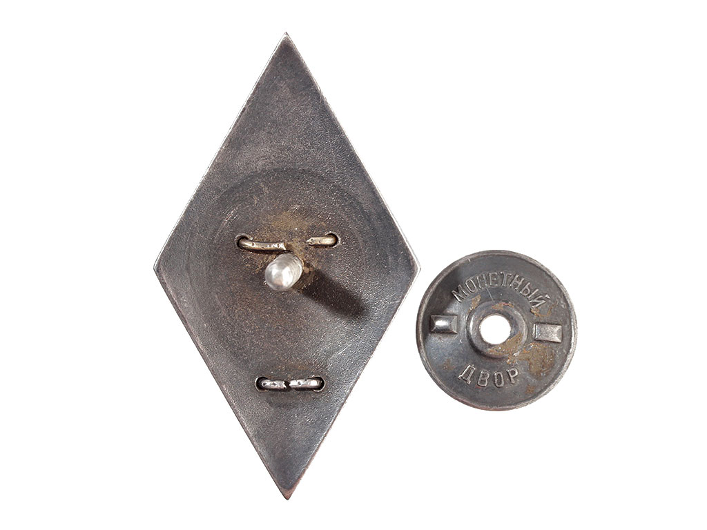 Ромб об окончании Академии бронетанковых и моторизованных войск имени И.В. Сталина. Серебро, эмаль. Московский монетный двор. Начало 1950-х годов. Очень хорошее состояние.