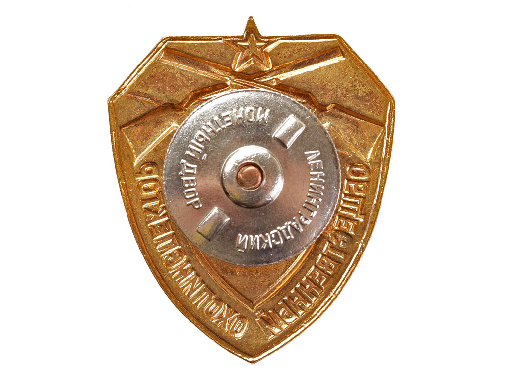 Знак "Общественный охотинспектор РСФСР". Ленинградский монетный двор, 1970-е годы. Томпак, эмаль.