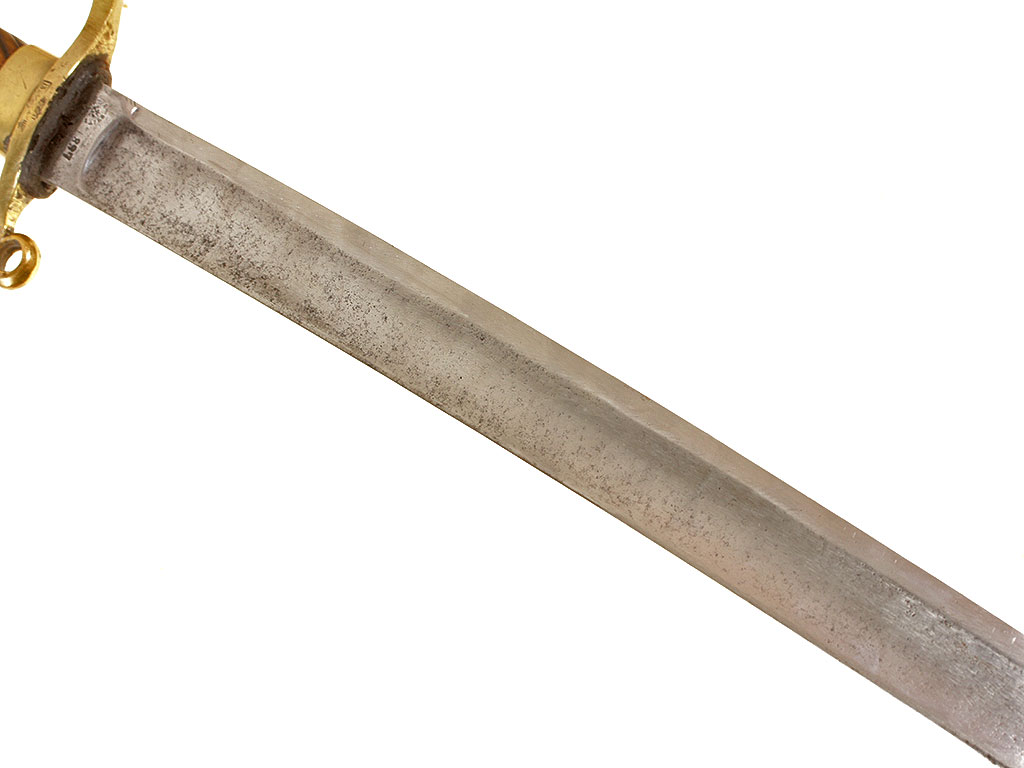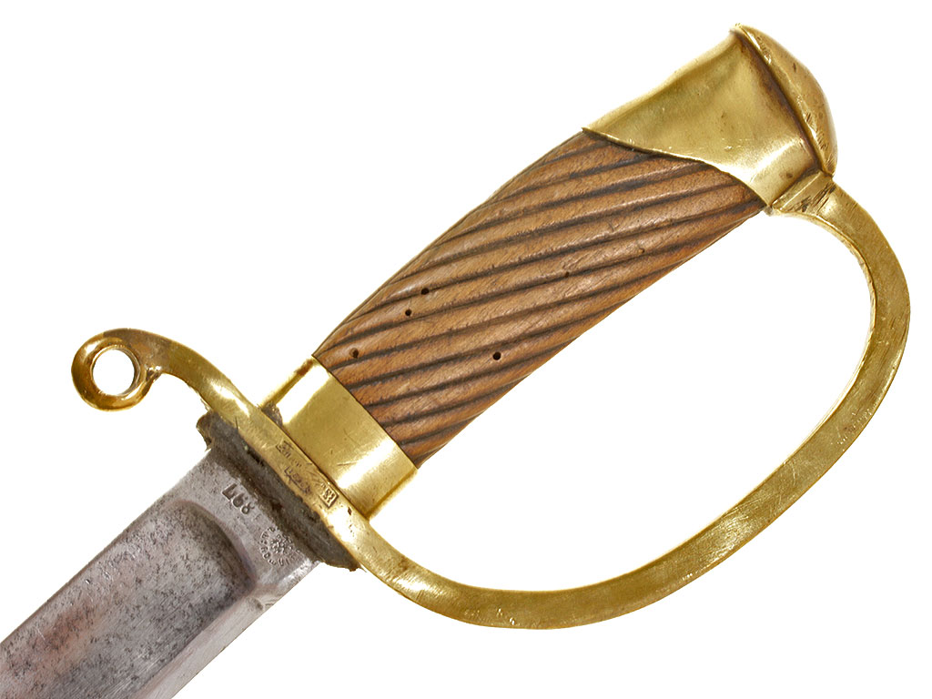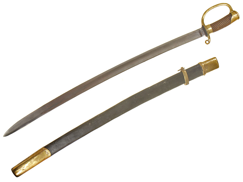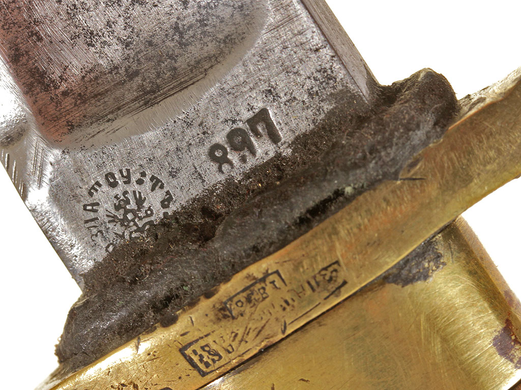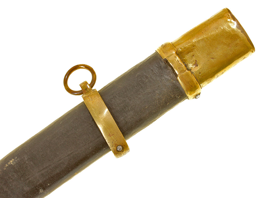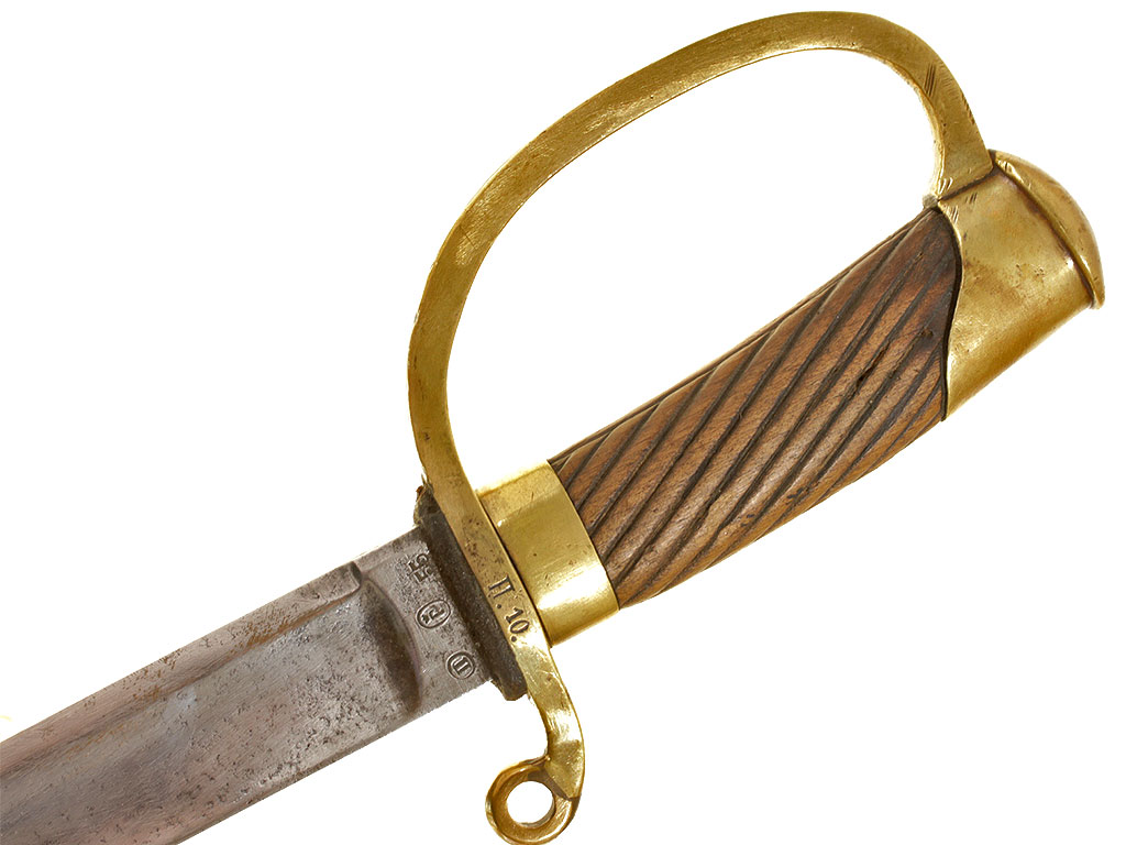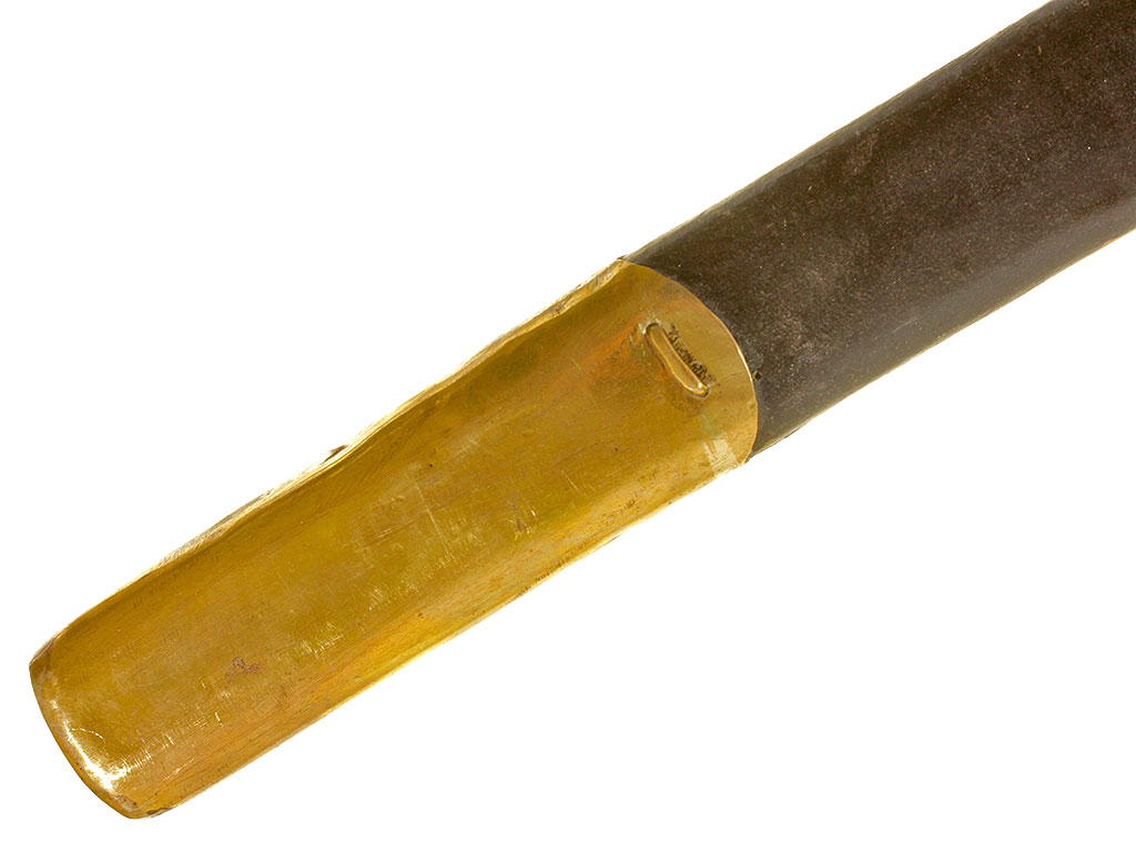 Шашка нижних чинов драгунского типа образца 1881 года. Клинок с клеймом Златоустовской оружейной фабрики у основания с годом выпуска - 1897, на оборотной стороне - клейма военной приемки. Рукоять деревянная, с продольными наклонными желобками. Прибор рукояти латунный, с клеймом Златоустовской оружейной фабрики на дужке гарды. Ножны деревянные, грунтованные, с латунным прибором.