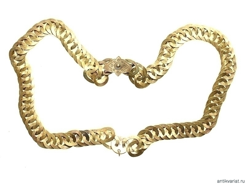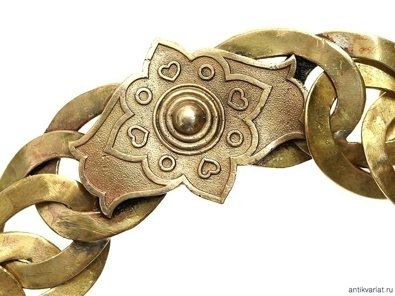 Цепь для шейного должностного знака. Латунь, оригинальная застежка с орнаментом. Вторая половина XIX века. Очень хорошее состояние.