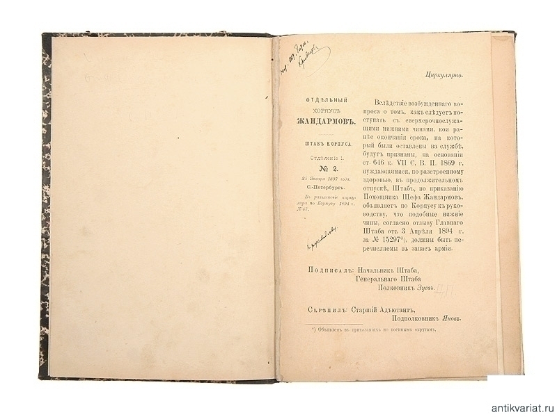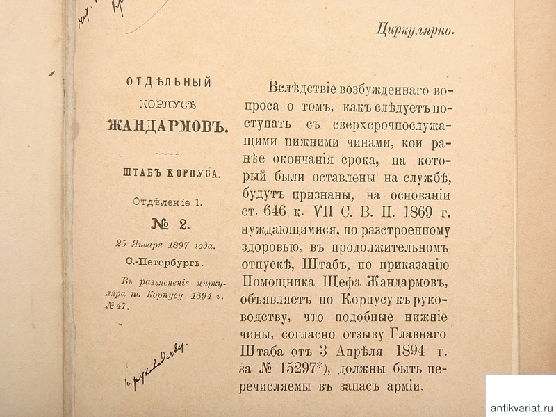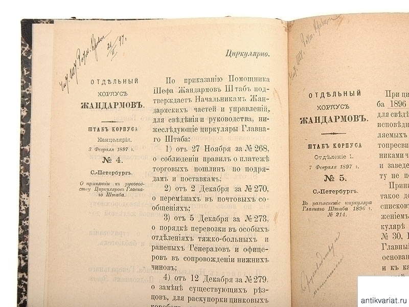 Циркуляр штаба Отдельного Корпуса Жандармов 1894-1897, Россия