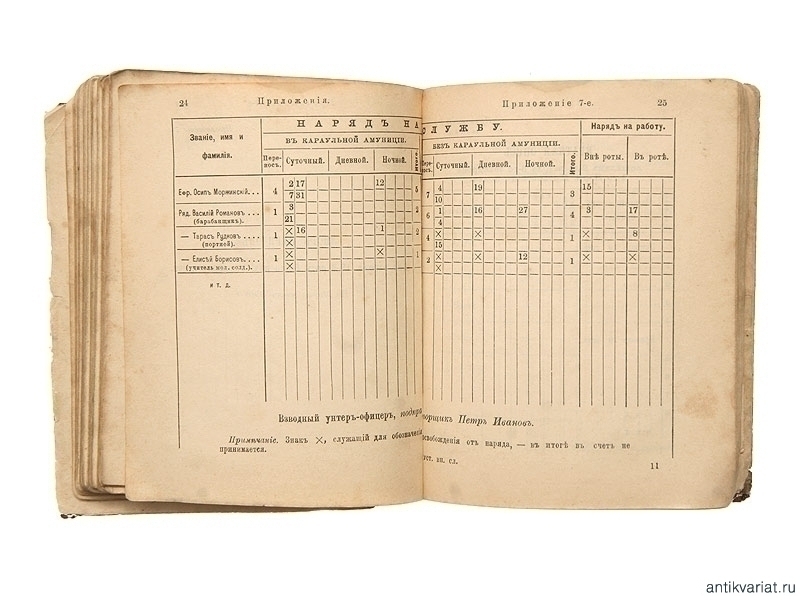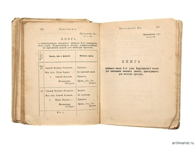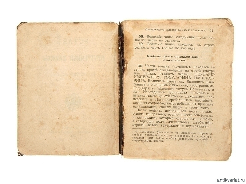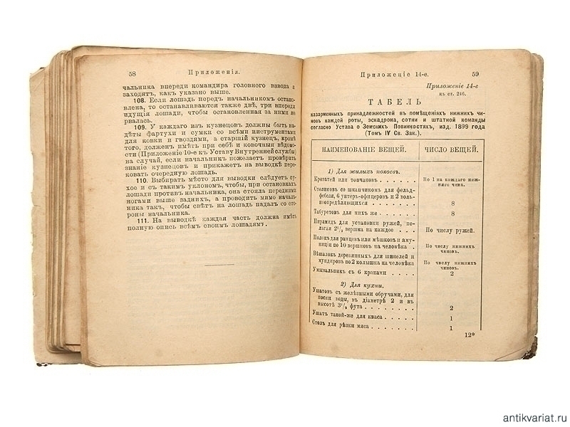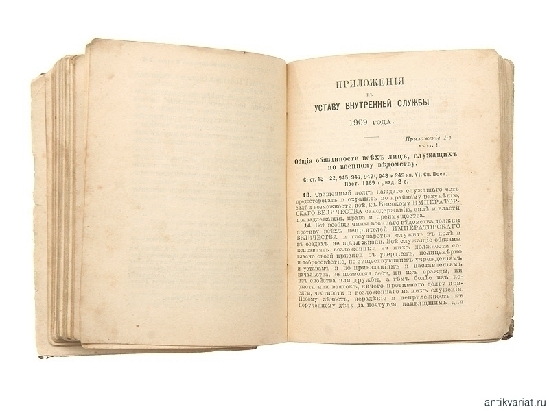 Устав внутренней службы, издание Военной типографии, Санкт-Петербург, 1909 год. Формат 14 х 11 см, коленкоровый переплет, 285 стр. плюс 144 стр. приложение.