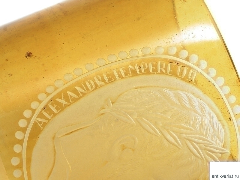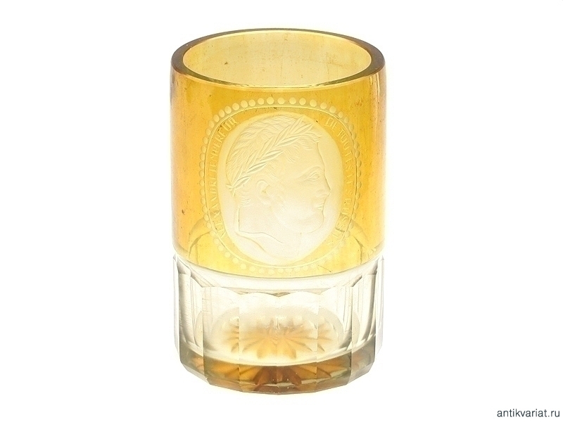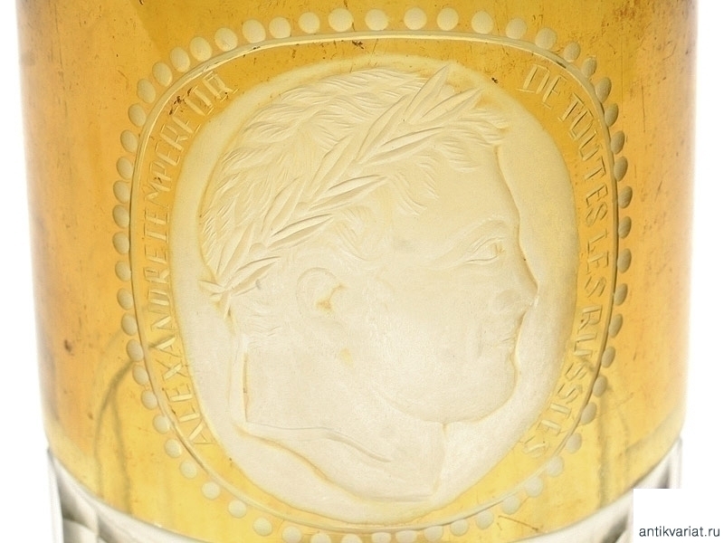 Ваза из двухслойного стекла с гравированным портретом Императора Александра I. Предположительно первая четверть XIX века. Очень хорошее состояние.