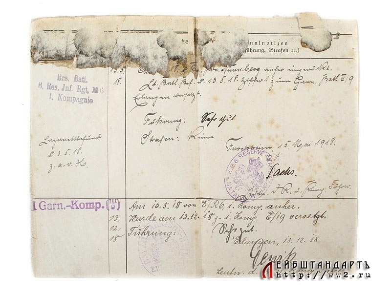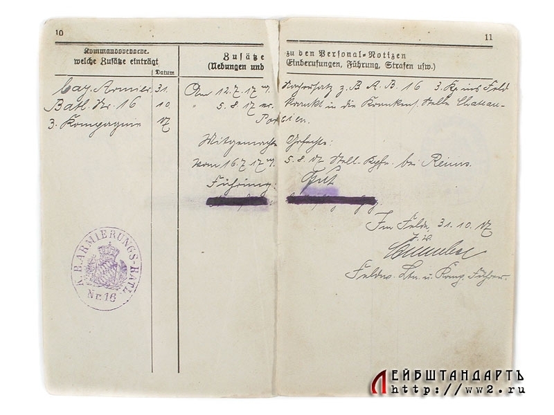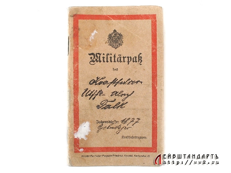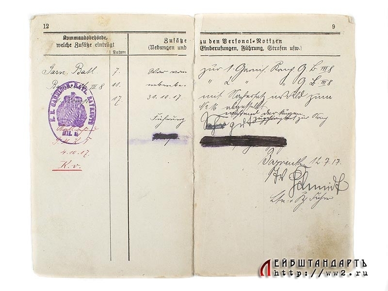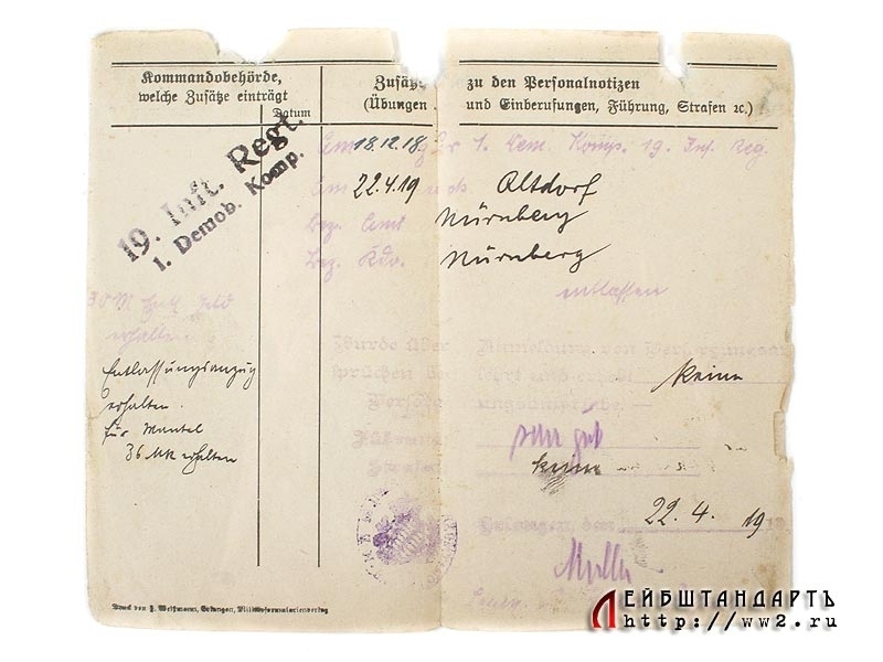 Военный билет солдата кайзеровской армии времен Первой мировой войны. Содержит многочисленные вкладыши с отметками о прохождении службы. Предмет в очень хорошем состоянии.