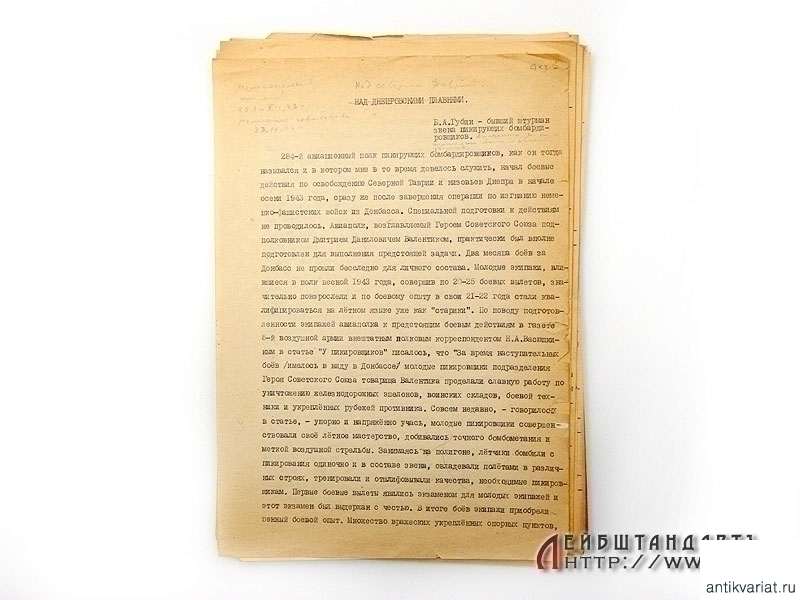 Воспоминания летчика, Бориса Архиповича Губина, ветерана 8 Воздушной Армии. Состоят из двух частей, состоящих из 13 и 35 машинописных страниц соответственно. Написаны во второй половине 1970-х годов.