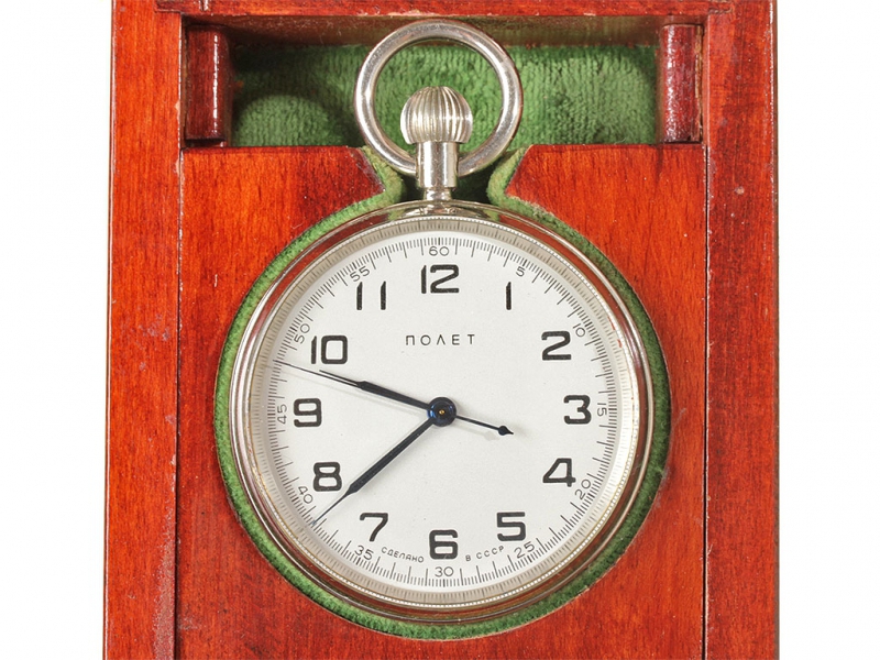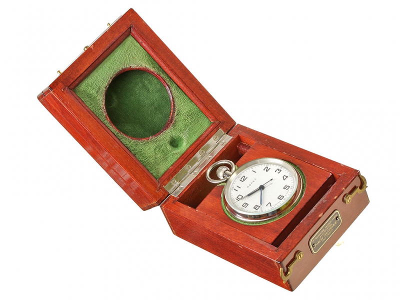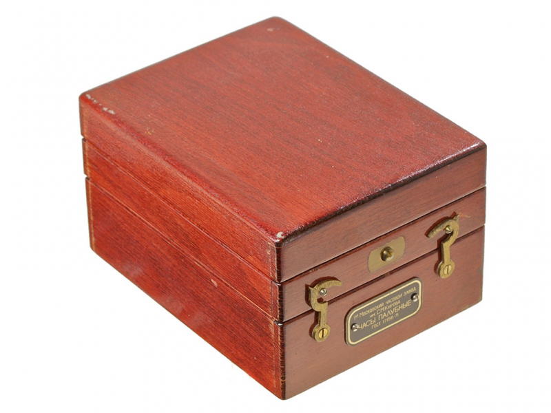Морские палубные часы "Полет" в превосходном рабочем состоянии. Помещены в оригинальный деревянный ящичек. Представляют собой анкерные часы повышенного класса точности с несколькими регулировками баланса и микрорегулятором. Также дополнительной функцией является возможность останова секундной стрелки для синхронизации с главным морским хронометром, в обязательном порядке входящим в приборное снаряжение корабля.
