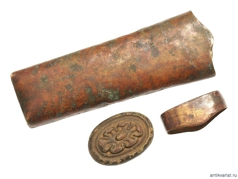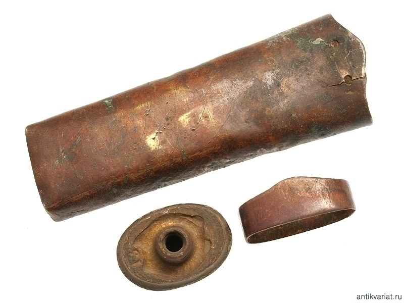 Лот запчастей для драгунской офицерской шашки образца 1909 года: стакан ножен, кольцо и навершие рукояти.