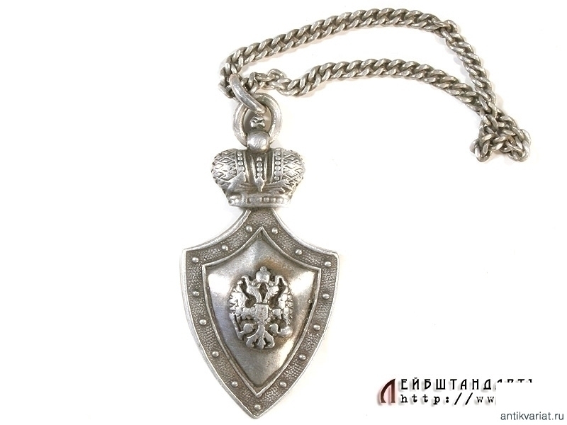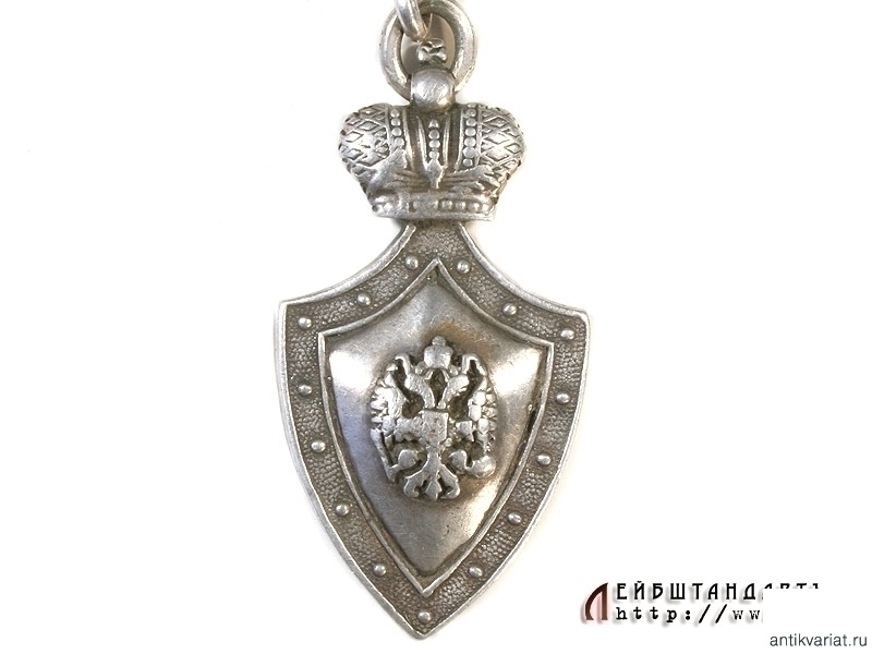 Жетон Императорского человеколюбивого общества для сбора пожертвований на воспитание и устройство бедных детей в мастеровые. Выполнен в виде щитка, лицевая сторона которого украшена Государственным гербом, а на оборотной помещена фамилия владельца с датой: "Ф.Ф.Шалалыгин 7 - VIII 1901". Изготовлен из серебра 84 пробы, имеется клеймо мастера. Очень хорошее состояние.