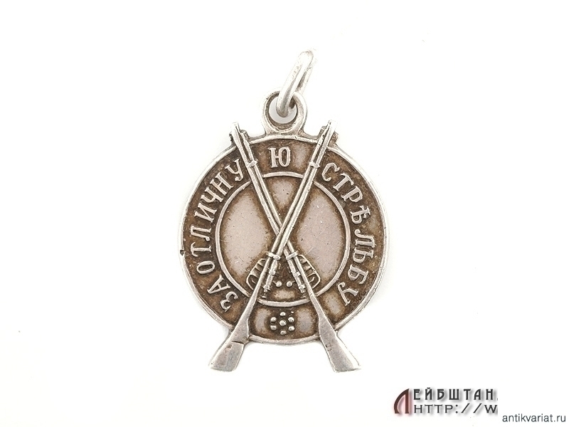 Жетон к призовым часам "За отличную стрельбу". Серебро 84 пробы, фирма "Эдуардъ". 1910-е годы. Очень хорошее состояние.