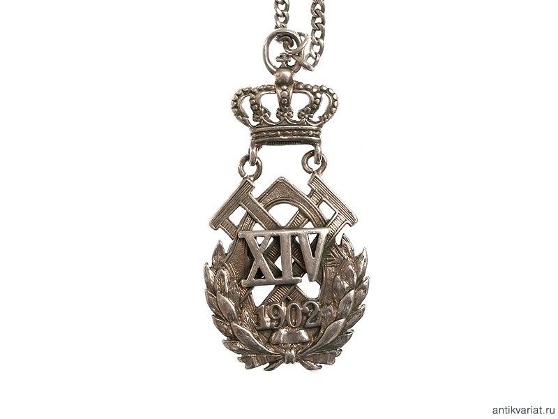 Жетон в память окончания технического учебного заведения. 1902 год, на реверсе гравированная фамилия владельца с датой "1912". Серебро. Хорошее состояние.
