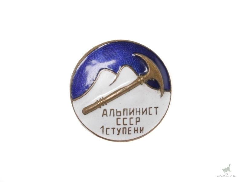 Значок "Альпинист СССР первой ступени". 1950-е годы. Латунь, эмаль. Отличное состояние.