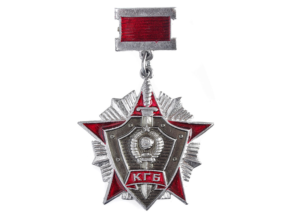 Ведомственный значок "КГБ", конец 1980-х годов. Алюминий.