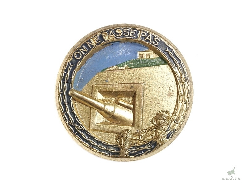 Памятный значок "Линия Мажино". Латунь. 1920-е годы. Отличное состояние.