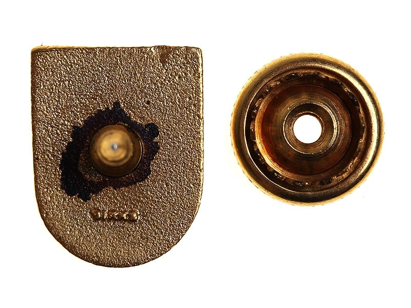 Миниатюрный фрачный значок ветерана Русской Освободительной Армии. Латунь, золочение, эмаль. Знак изготовлен в США объединением ветеранов РОА в 1970-е годы. Отличное состояние.