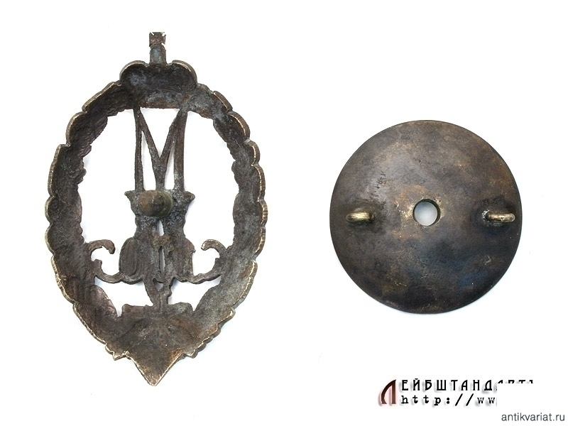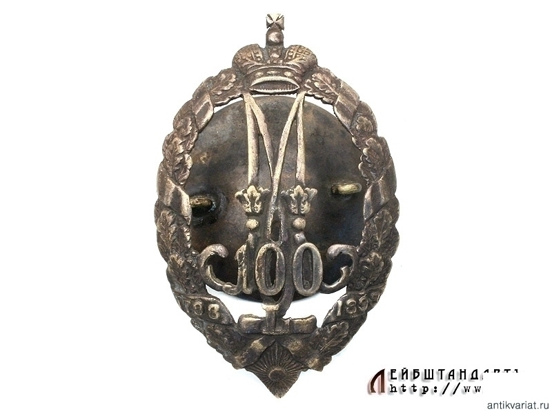 Знак нижних чинов 7-го драгунского Кинбурнского Его Императорского Высочества Великого Князя Михаила Николаевича полка в очень хорошем состоянии. Представляет собой латунный венок из дубовых ветвей, в центр которого помещена буква "М" - вензель Михаила Николаевича с цифрой "100", а под вензелем внизу знака - Георгиевская звезда. Знак винтовой, сохранилась оригинальная закрутка.
