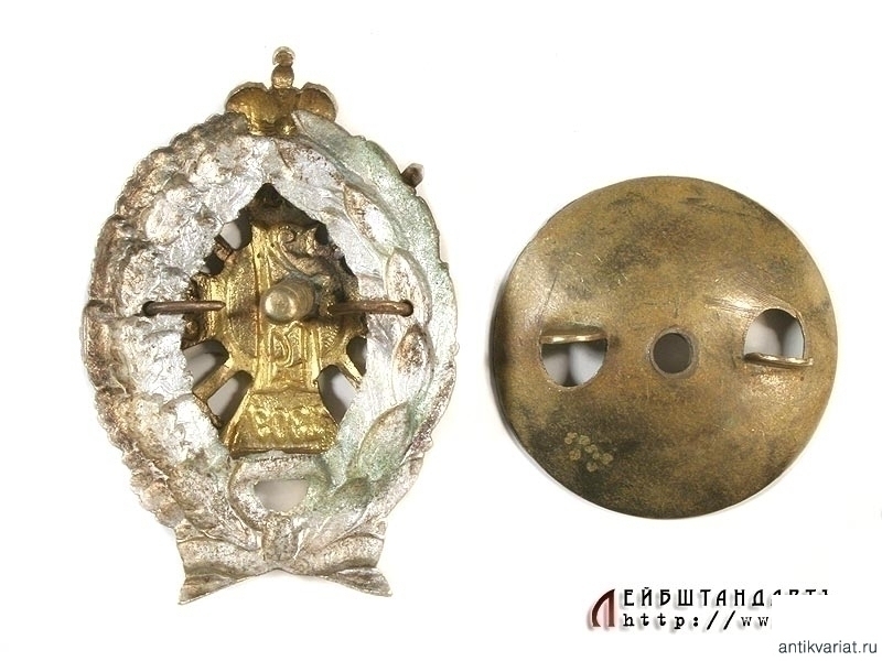 Полковой знак нижних чинов 51-го Литовского Его Императорского Высочества Наследника Цесаревича пехотного полка в очень хорошем коллекционном состоянии. Знак изготовлен из бронзы, высокий рельеф, почти без следов износа. Представляет собой венок из лавровых и дубовых листьев, в центре которого помещен накладной Кавказский крест с вензелем Наследника Цесаревича. На винте, сохранилась оригинальная закрутка. Без клейм. Сохранилось оригинальное серебрение, золочение и красочное покрытие.
