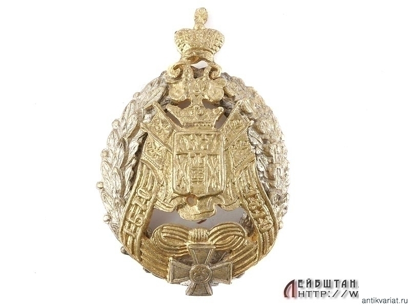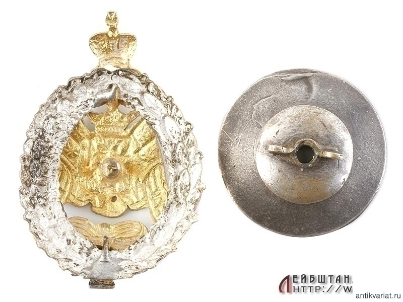 Знак нижних чинов Донского казачьего войска в очень хорошем состоянии. Представляет собой посеребренный латунный венок, на который наложен позолоченный геральдический щит с гербом Донской области, вензелем Николая Второго и накладным Георгиевским крестом. Знак винтовой, закрутка и подложка подобраны.