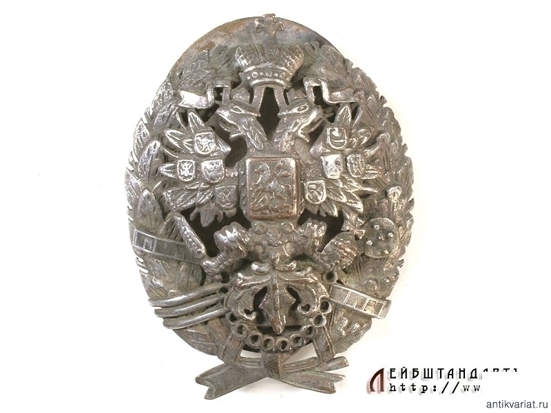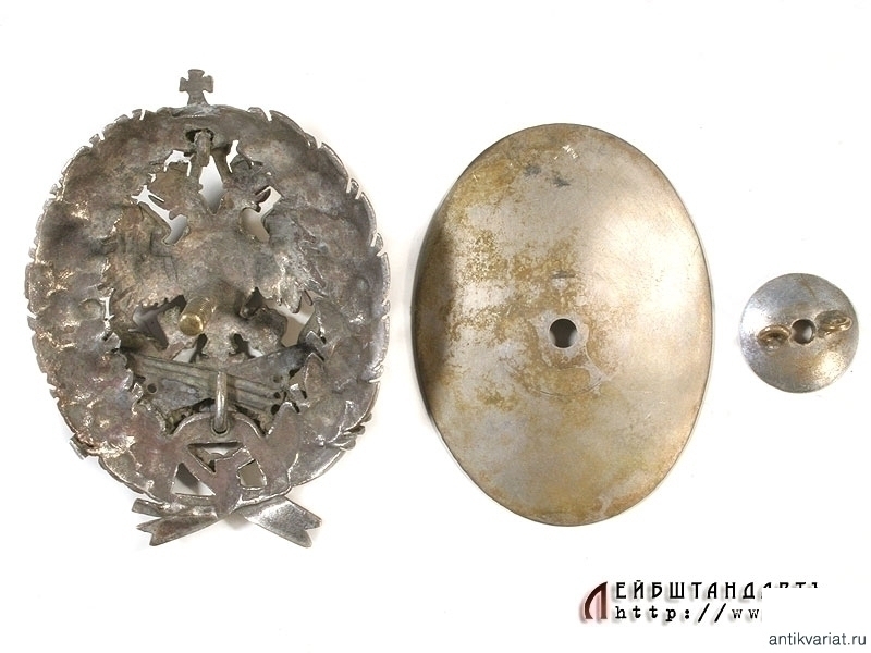 Нагрудный знак об окончании Константиновского межевого института в очень хорошем состоянии. Изготовлен посеребренной бронзы, серебрение полностью сохранилось. Знак сложный составной, на винте. Под накладным двуглавым орлом изображены скрещенные астролябия и мерная сажень, соединенные цепью. Оригинальные закрутка и прижимная пластина.