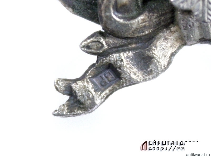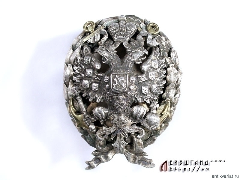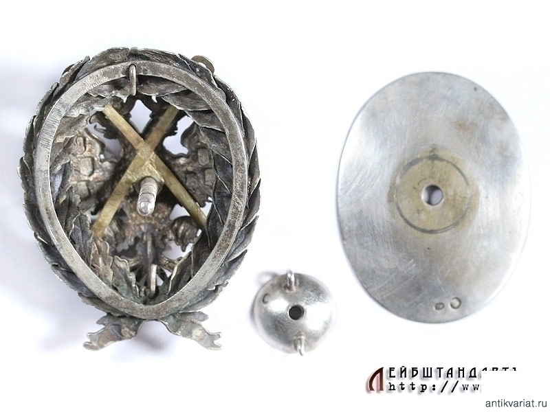 Знак об окончании Офицерского класса Морского кадетского корпуса или академического курса морских наук в отличной сохранности. Знак изготовлен из серебра 84 пробы, клейма мастера "ВР". Работа очень высокого качества, в венке все дубовые и лавровые листья изготовлены отдельно и припаяны к основе, двуглавый орел и якоря также представляют собой самостоятельные детали в сборной конструкции. На якорях сохранилось оригинальное золочение, на серебре присутствует легкий налет патины. Знак на винте, сохранились оригинальные закрутка и пластина.