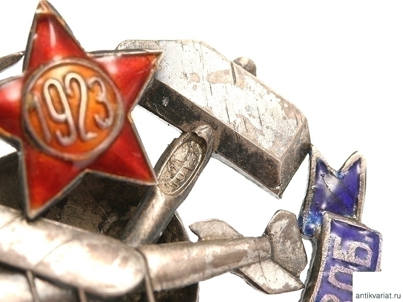 Знак Общества друзей воздушного флота Северо-Западной области. 1923 год. Серебро 84 пробы, эмаль. Оригинальная закрутка также со знаком пробирного удостоверения. Очень хорошее состояние.