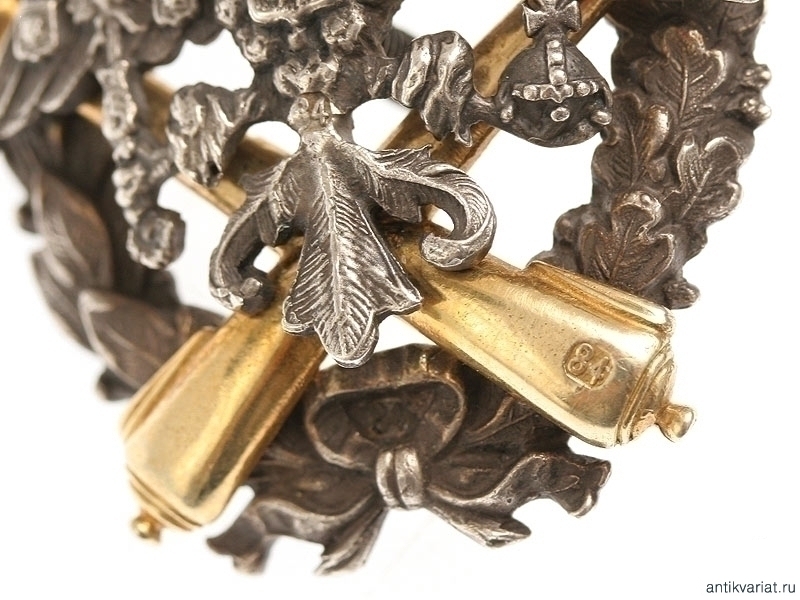 Утвержден 08.04.1909г. Серебро, позолота. Клейма: справа на пушке "84", на орле "84", внизу на банте "84", на закрутке "84".