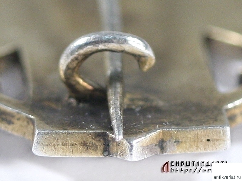 Знак изготовлен из серебра 84 пробы, имеется клеймо мастера "ПЕ". В отличной сохранности, практически полностью сохранилось оригинальное золочение, эмалевое покрытие без дефектов.
