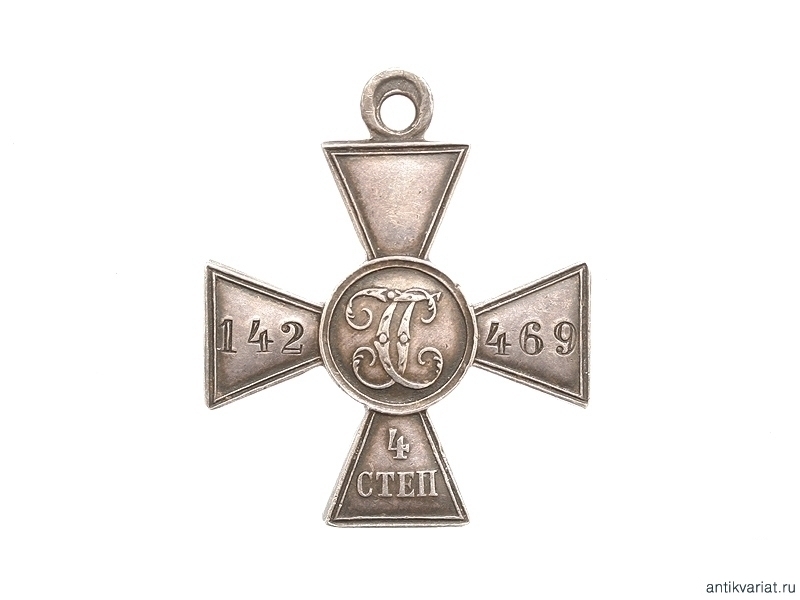 Знак отличия военного ордена св.Георгия 4 степени для нижних чинов. На кресте имеются следующие клейма "4 степ. № 142 469". Очень хорошее состояние.