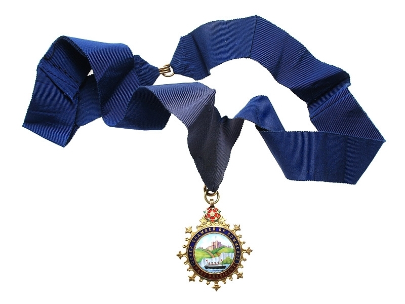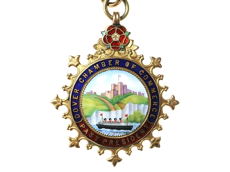 Знак почетного председателя торговой палаты города Дувра (1934 - 1935). Золото 375 пробы, эмаль, на оригинальной ленте.
