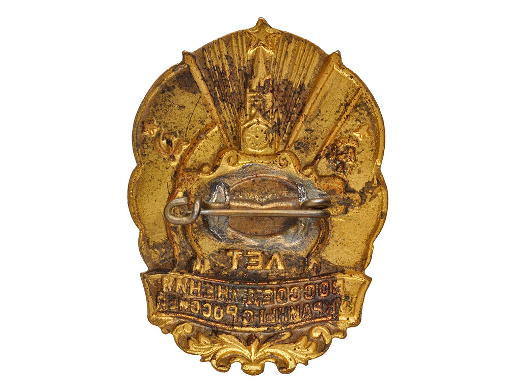Надпись на русском языке (существовал вариант знака с надписью на украинском языке). Томпак, эмаль.