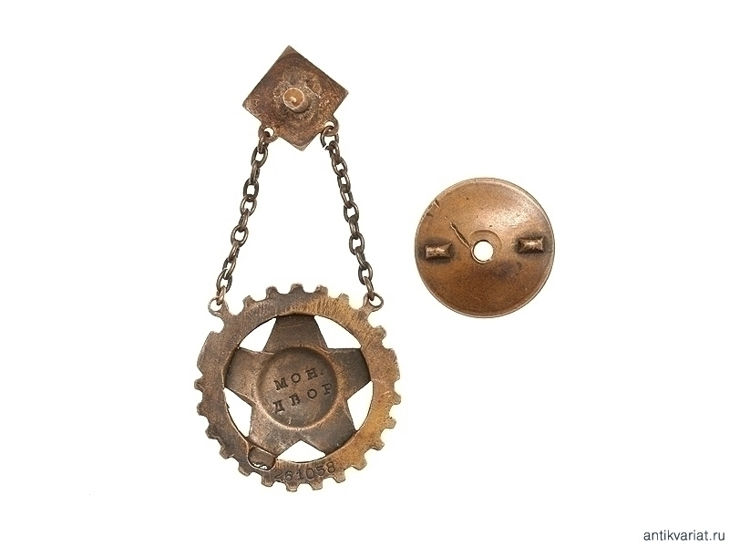 Знак с оригинальной гайкой. С оборотной стороны знак маркирован клеймом "261058 Мон Двор".