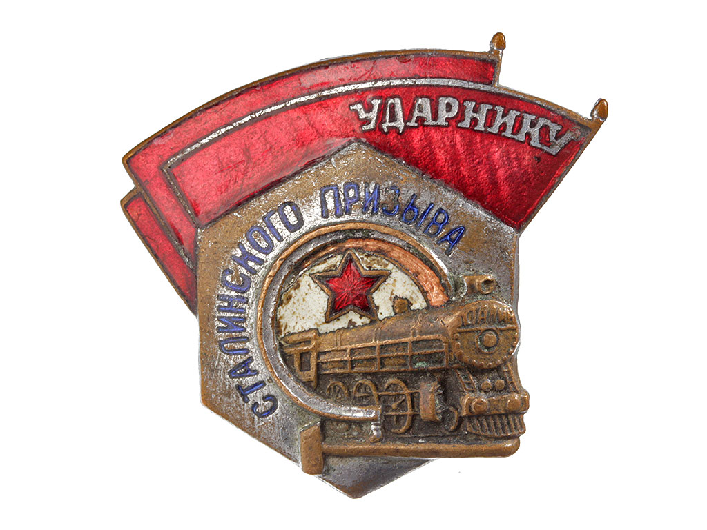 Знак "Ударнику Сталинского призыва". Томпак, эмаль.