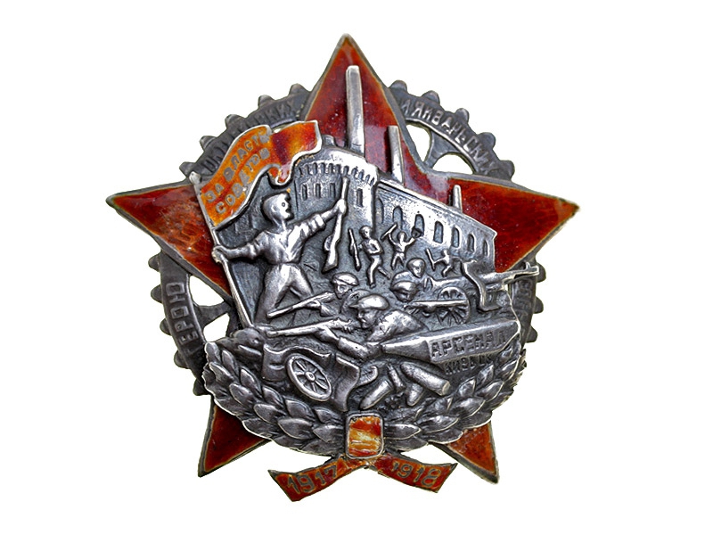 Знак был учрежден Киевским Окрисполкомом в 1927 г. в память о событиях 1917–1918 гг. на заводе "Арсенал" в Киеве. 3 октября 1917 года рабочие киевского завода "Арсенал" подняли вооруженное восстание. В результате власть в Киеве перешла к ревкому. В январе 1918 года Центральная Рада захватила власть в свои руки.
