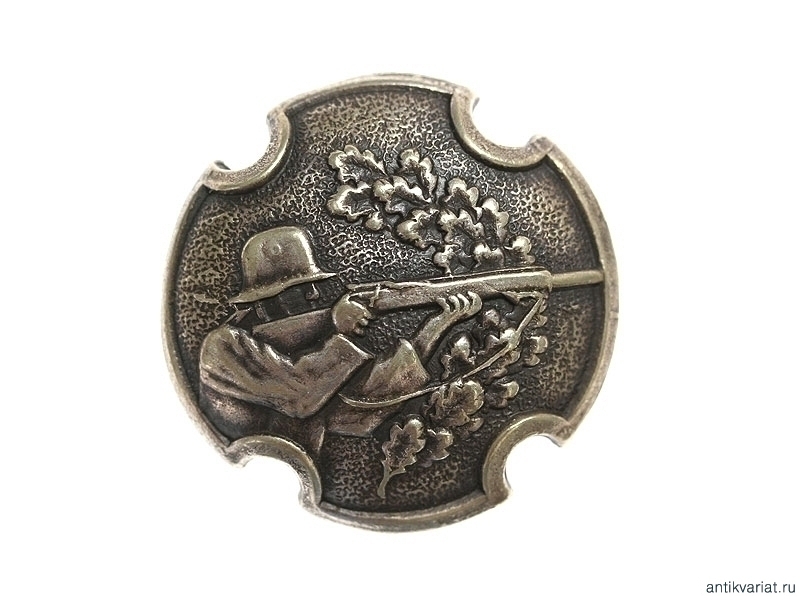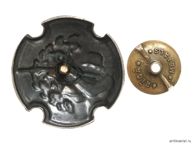 Знак за отлично выполненные упражнения по стрельбе из винтовки в серебре. Мельхиор, на закрутке надпись в две строки "Riga Metals". Изготовитель не указан (по аналогии - типичный Калниньш).