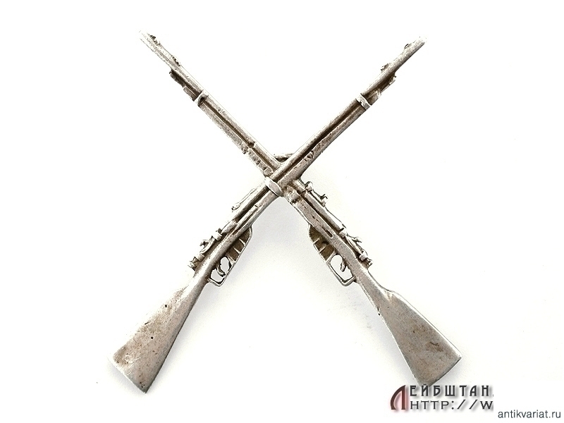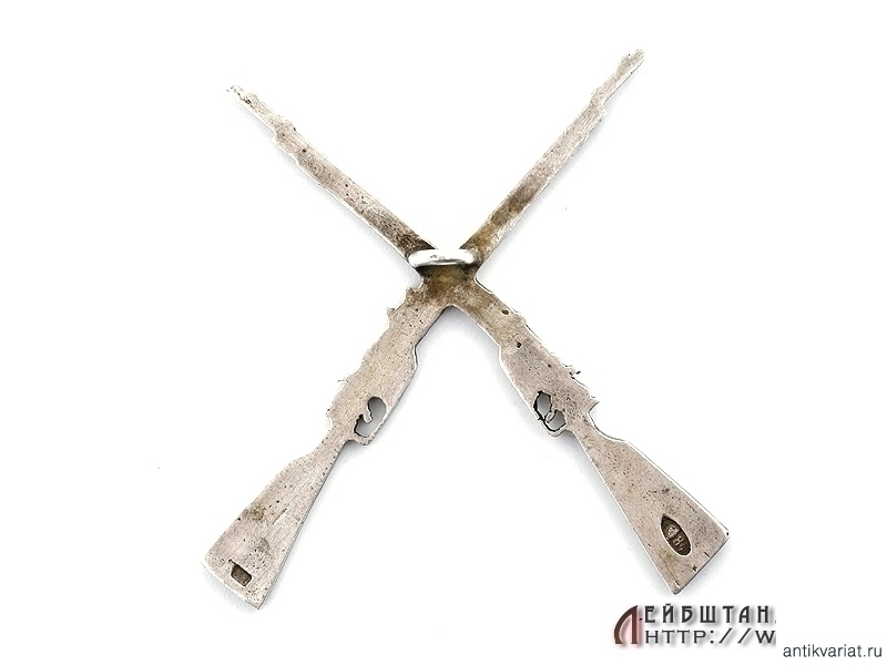 Знак "За стрельбу" в виде скрещенных винтовок. Серебро 84 пробы. 1910-е годы. Очень хорошее состояние.