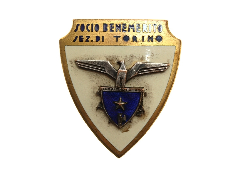 Знак итальянского альпинистского клуба (Club Alpino Italiano) в городе Турине. Томпак, золочение, эмаль. 1930-е годы. С клеймом "Johnson Milano". Отличное состояние.