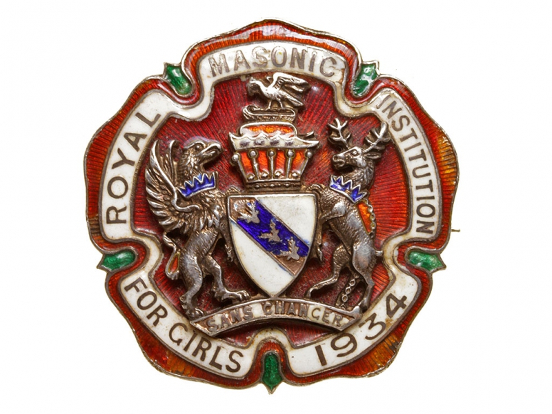 Нагрудный знак выпускницы Королевского масонского института для девочек, 1934 год. Серебро, эмаль.