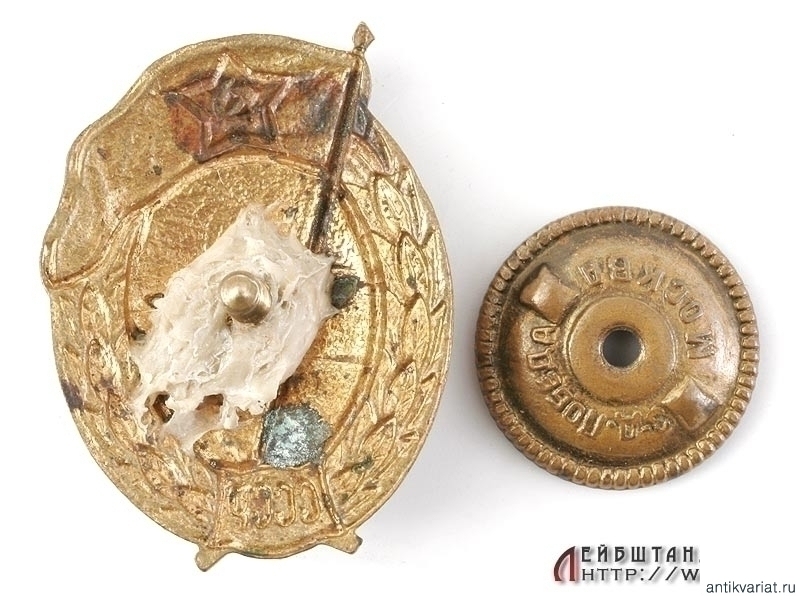 Знак за окончание летного военного училища выпуска 1950-х годов. Бронзовый, на винте, эмалевое покрытие без дефектов. Винт подклеен.