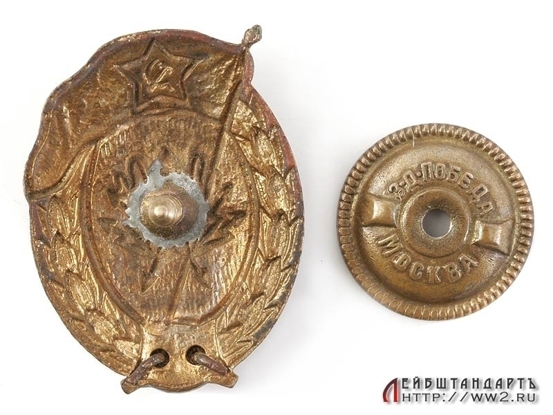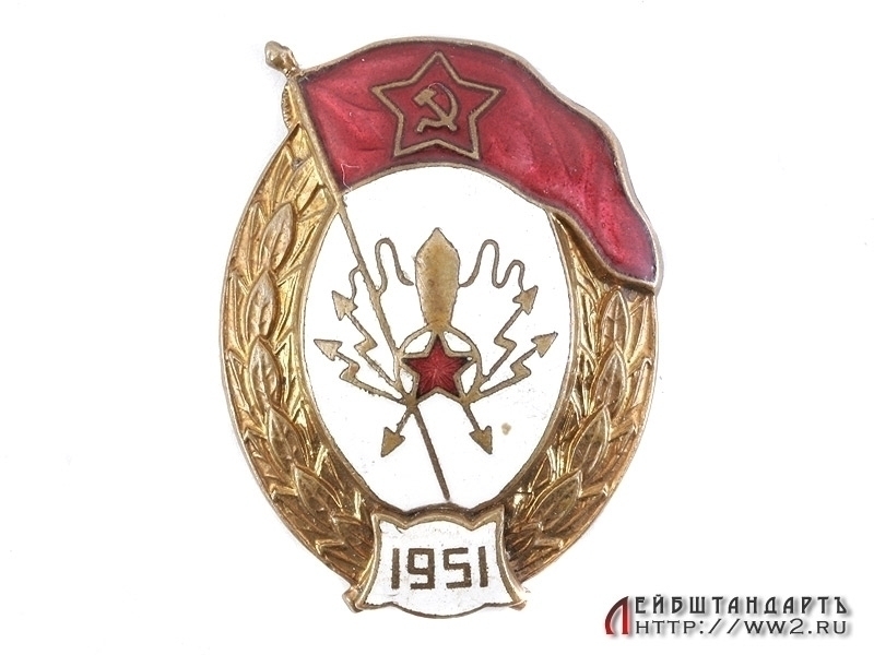 Знак за окончание радиолокационного военного училища выпуска 1950-х годов. Бронзовый, на винте, эмалевое покрытие без дефектов, оригинальное золочение.