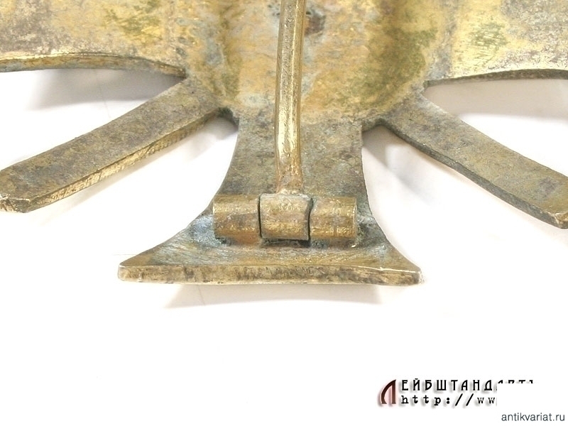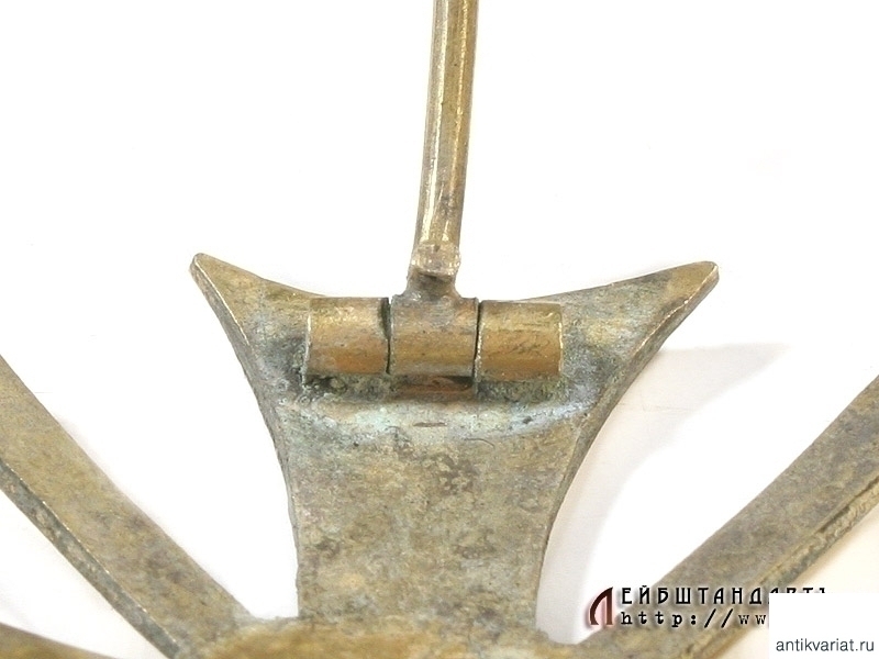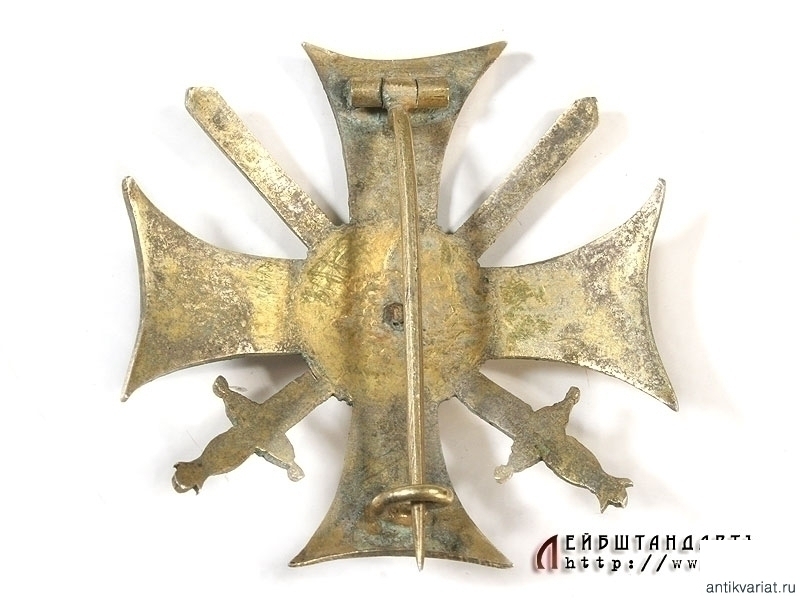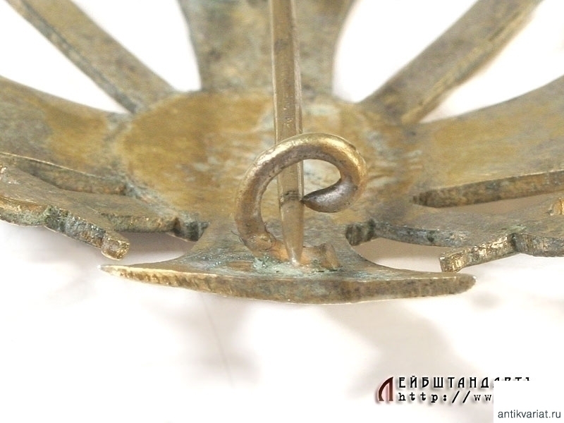 Данный образец примечателен тем, что в отличие от знаков для нижних чинов обращает на себя внимание необычностью исполнения: знак позолочен, лопасти выкрашены в черный цвет, помещенный в центре двуглавый орел - накладной, как и на офицерском знаке. В то же время, в отличие от офицерского знака, который изготавливался в серебре, данный экземпляр сделан из бронзы. Можно предположить, что представленный знак изготовлен на заказ для унтер-офицера либо офицера, участника Кавказских кампаний.