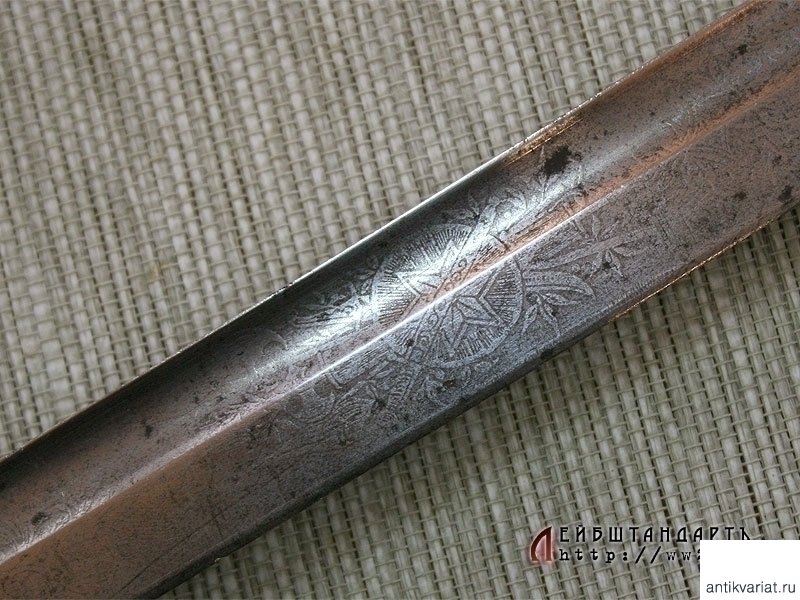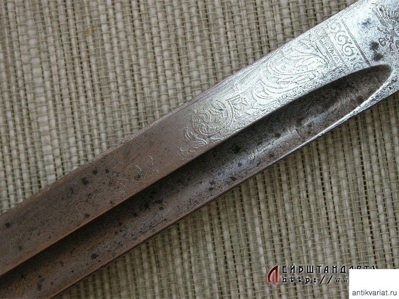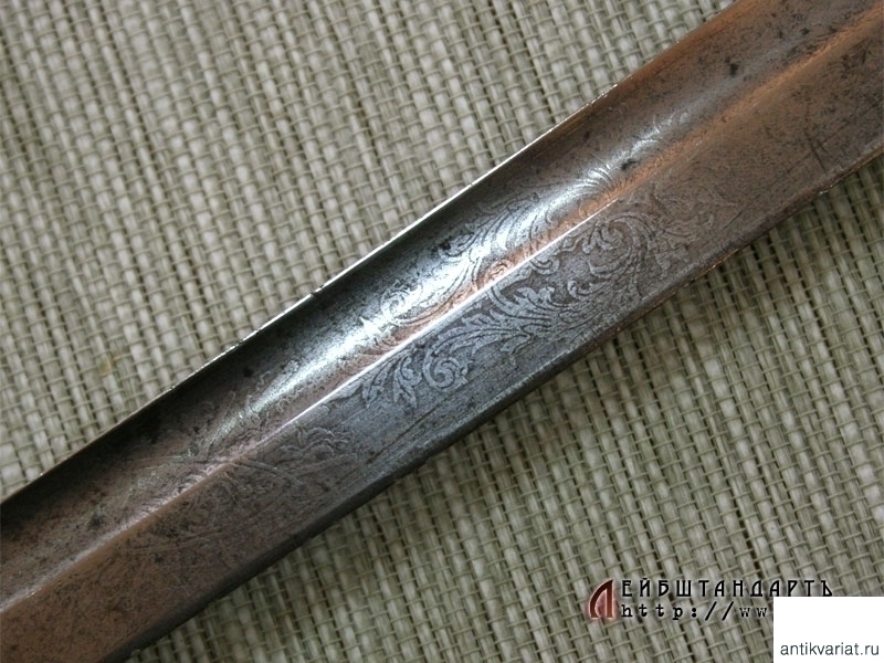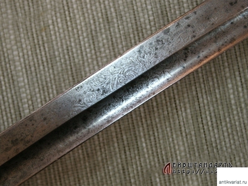 Шашка явно облегченного типа, использовавшегося для повседневного ношения в мирное время и широко распространенного в офицерской среде в последней четверти XIX - начале XX века. Именно такие шашки многие офицеры называли "крысоколками" или "мышеколками". Сочетание немецкого и русского клейм на клинке, причем именно золингенской фирмы Блекманна и петербургского магазина Скосырева, встречается на клинках русского офицерского оружия конца XIX - начала XX века. Такие клинки с соответствующими украшениями заказывались немецким фирмам и реализовывались через русские магазины офицерских вещей, имевшиеся в крупных городах Российской империи. К шашке прилагается новодельный темляк, изготовленный из Георгиевской ленты.